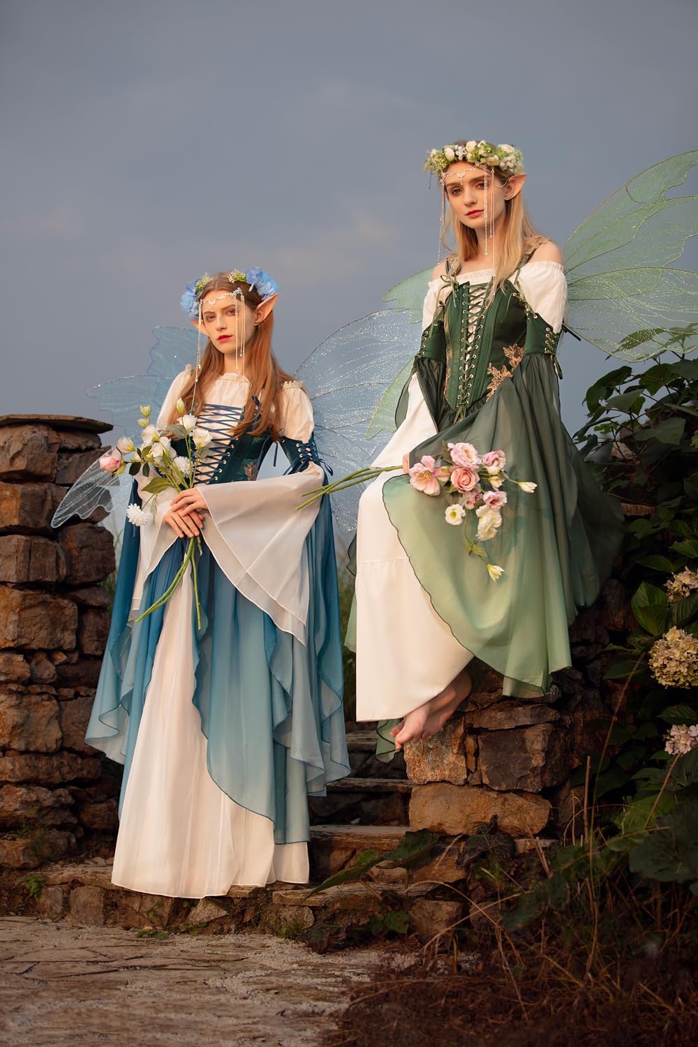 MEDIEVAL RENAISSANCE DRESS -- This exquisite elf costume features a classic medieval design. Pair it with your own inner dress for a beautifully layered look. It's a standout choice for anyone looking to embody the charm of medieval fashion.