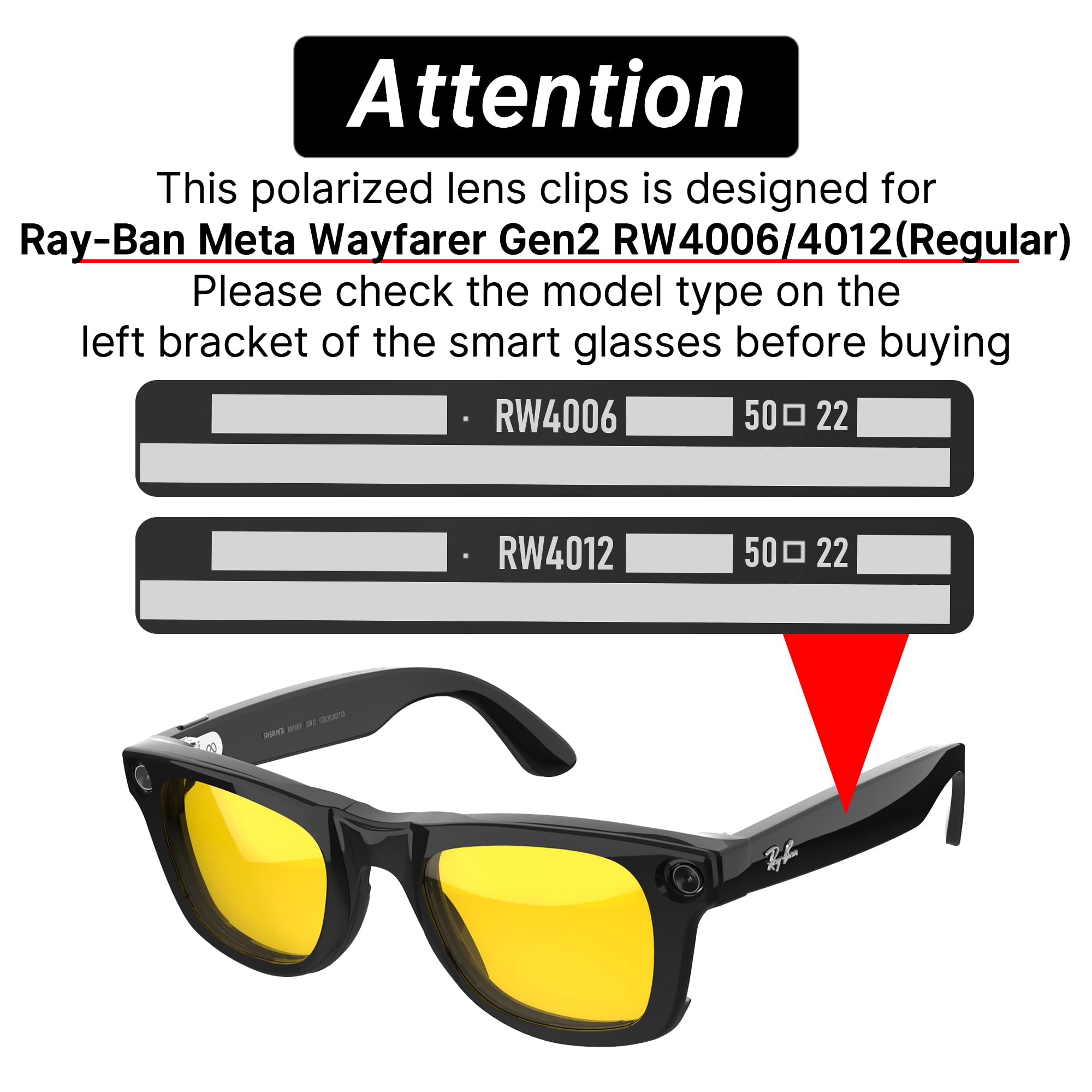 👓👓PERFECT FIT: This sunglasses clip-on is specially designed for Ray Ban Meta Wayfarer Gen 1-RW4006 and Gen 2-RW4012 Regular size (50-22), providing full protection without affecting the wearing of glasses, seamless fit, making your smart glasses look more beautiful and stylish