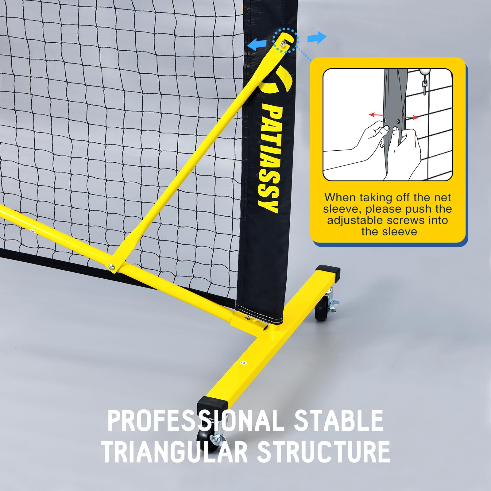 Net Tension Adjustable:This portable pickleball net without an intermediate pole features a tensioned rope structure that easily adjusts the tension of the net through the top rope,keeping the top net taut and straight and minimizing sagging in the middle