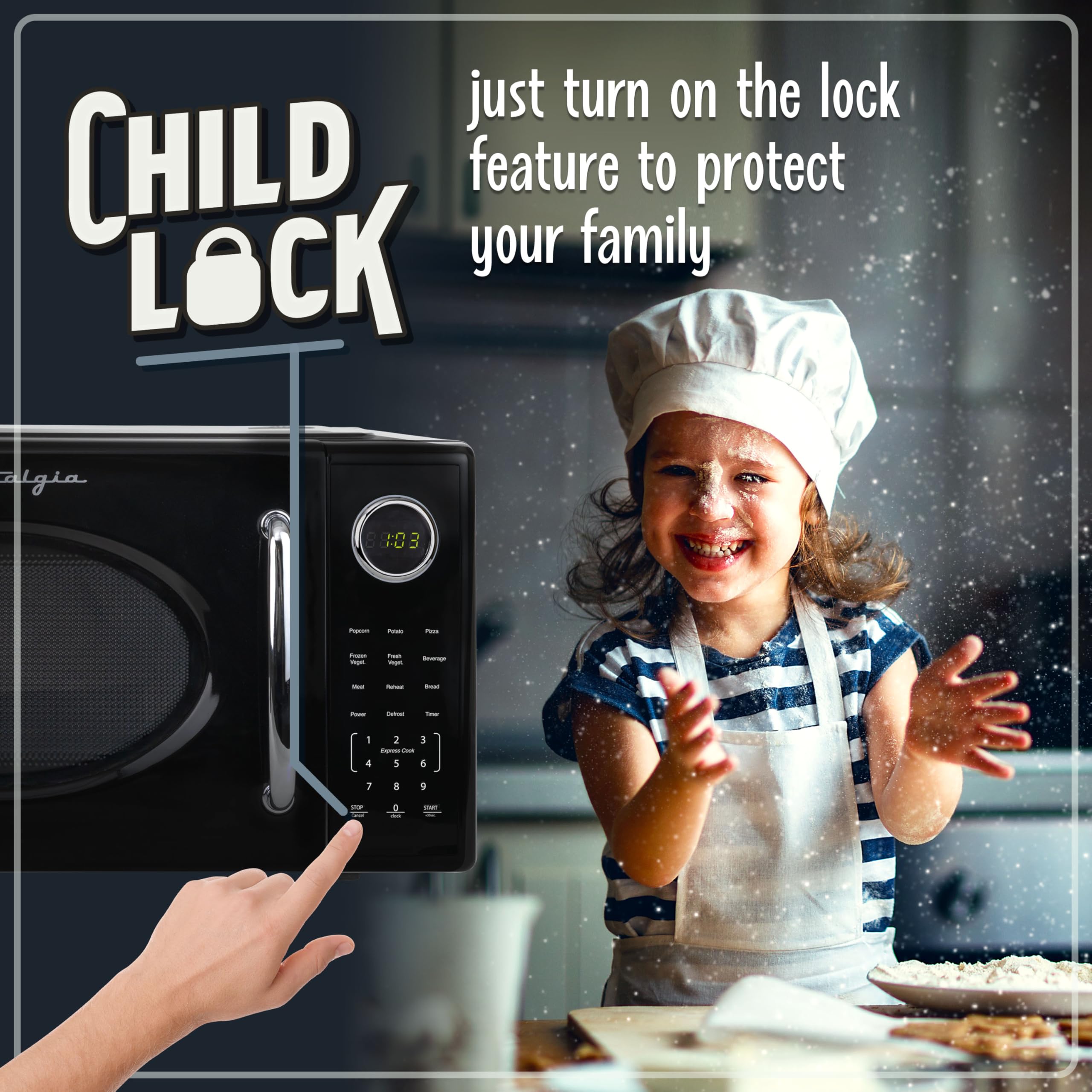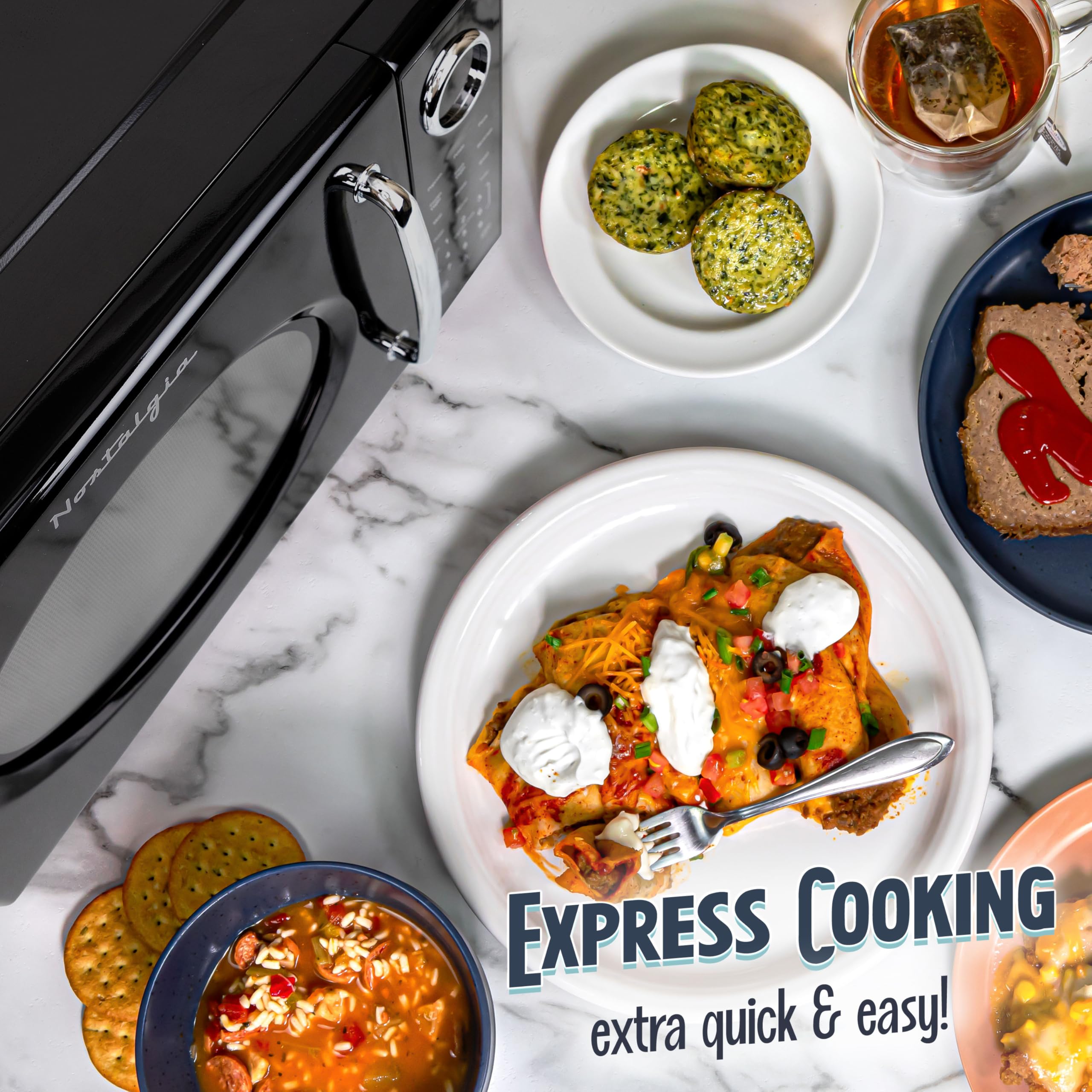 Bring classic style and modern convenience into your kitchen with the Nostalgia Retro Micrwoave Oven! This charming microwave, with its iconic retro design, will not only add a touch of style to your space but also revolutionize the way you cook and heat your favorite meals. Convenience is at your fingertips with the easy to operate button control panel, which allows you to cook by time, adjust power levels, select an auto-cook program, defrost, or quick start. Enjoy easily prepared a variety of meals, from late-night snacks to a family meal.