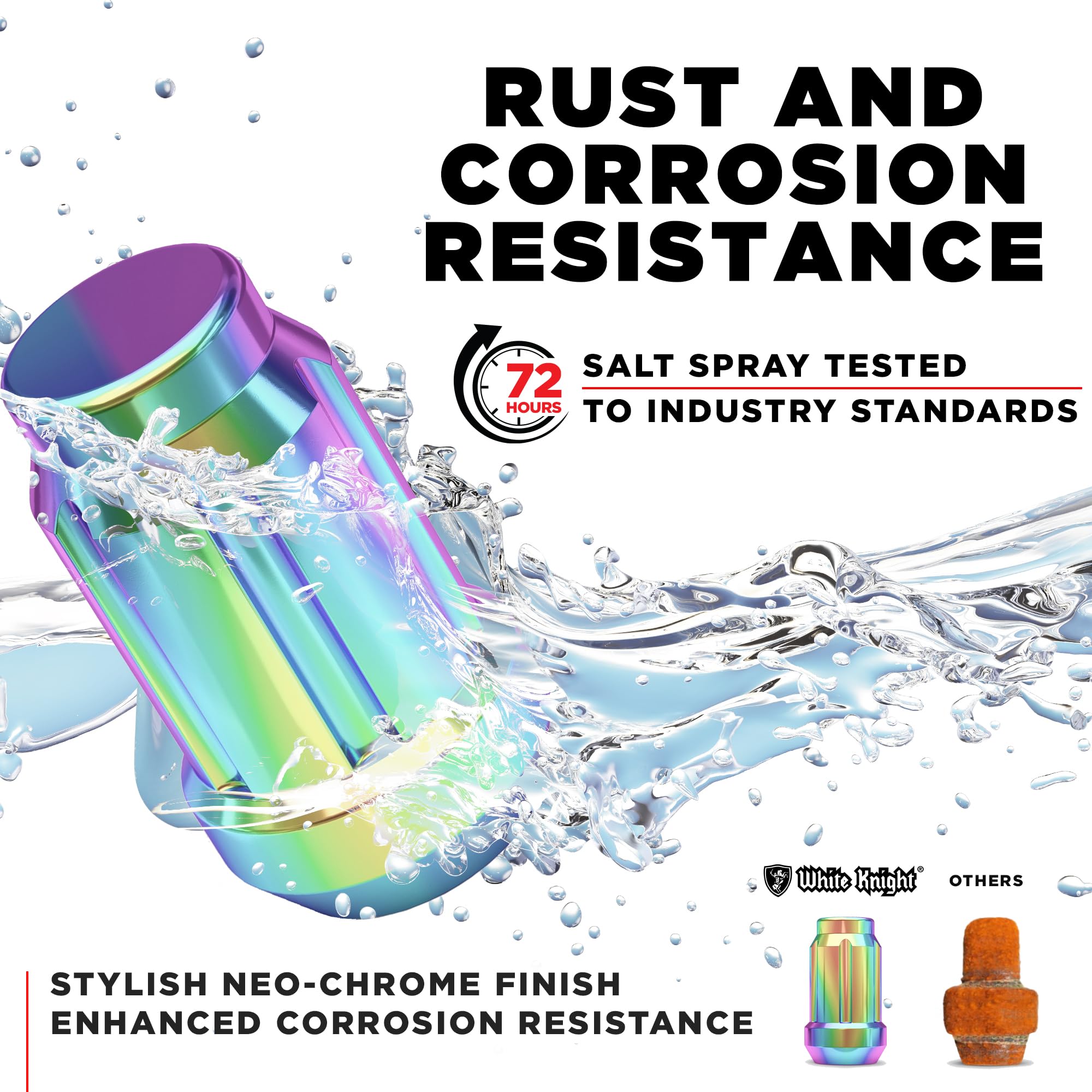 *** FOR AFTERMARKET WHEELS WITH SMALL DIAMETER SEAT ***White Knight has established a solid reputation of providing the automotive aftermarket industry with quality products at competitive prices. White Knight lug nuts are constructed to enhance the luster of your wheels and provide maximum dependability and strength. Unlike painted lug nuts, White Knight black chromed lug nuts offer maximum resistance to color stripping.