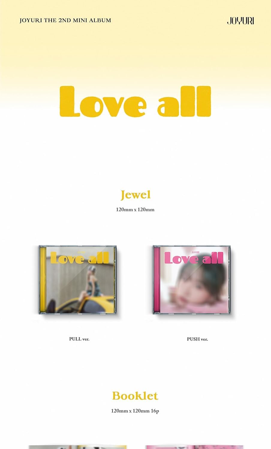 Jo Yuri LOVE ALL 2nd Mini Album Jewel Version Release Date - 10th August 2023 -Album Contents- CD+16p Booklet+2p Photo Card+Free Tracking Number. Depending on versions , contents inside the album may differ. POB is randomly included inside some of the first press albums. Tracklist. 01. TAXI 02. Lemon Black Tea 03. Bitter Taste 04. Hang On 05. 멍 ✔Officially distributed Brand New & Original item from Manufacturer. ✔All items from original manufacturers are delivered in original sealed package condition. ✔Your purchase quantity will be count on Korea HANTEO & GAON Chart! ✔All ordered item will be shipped with a tracking number. ✔All products are packed and shipped in box.