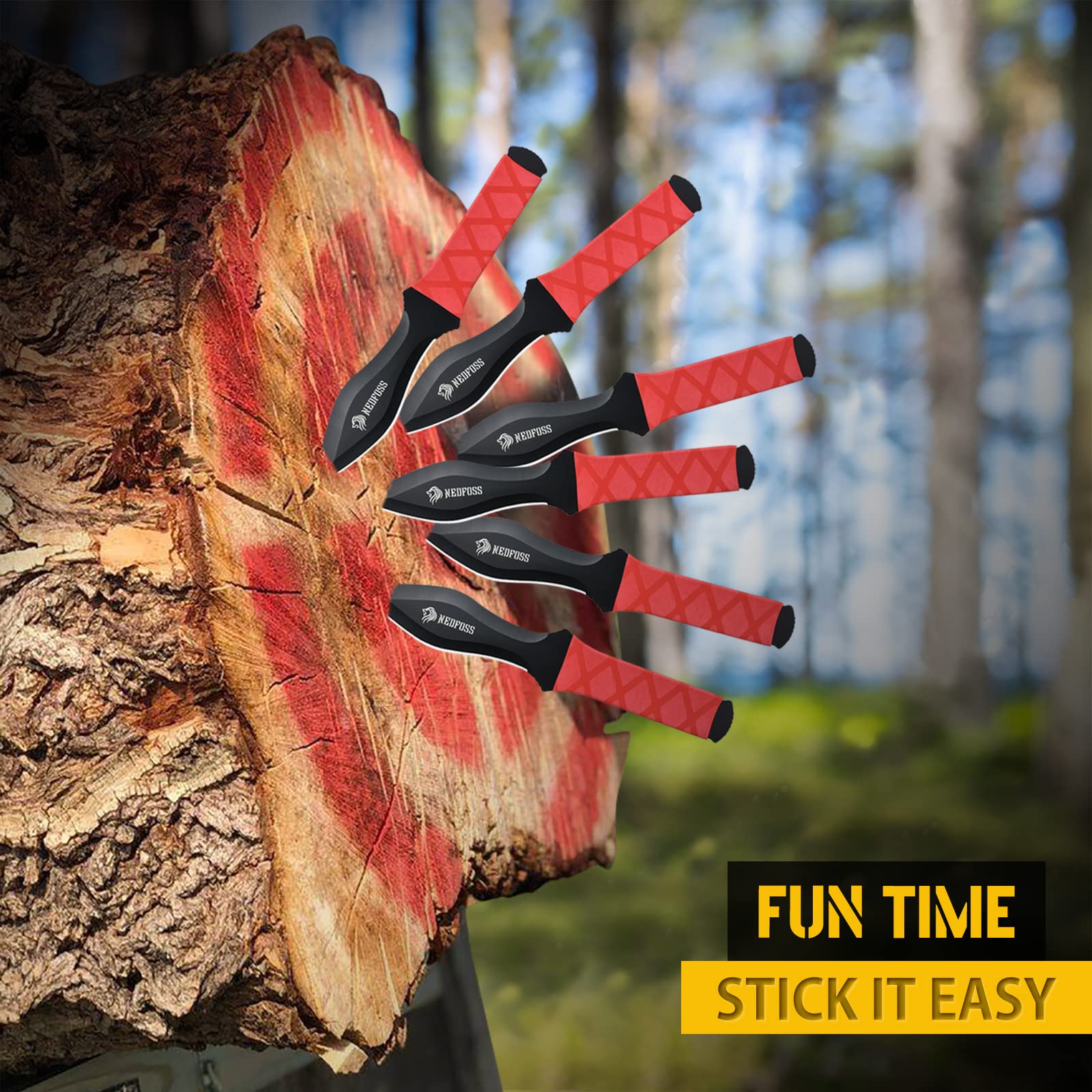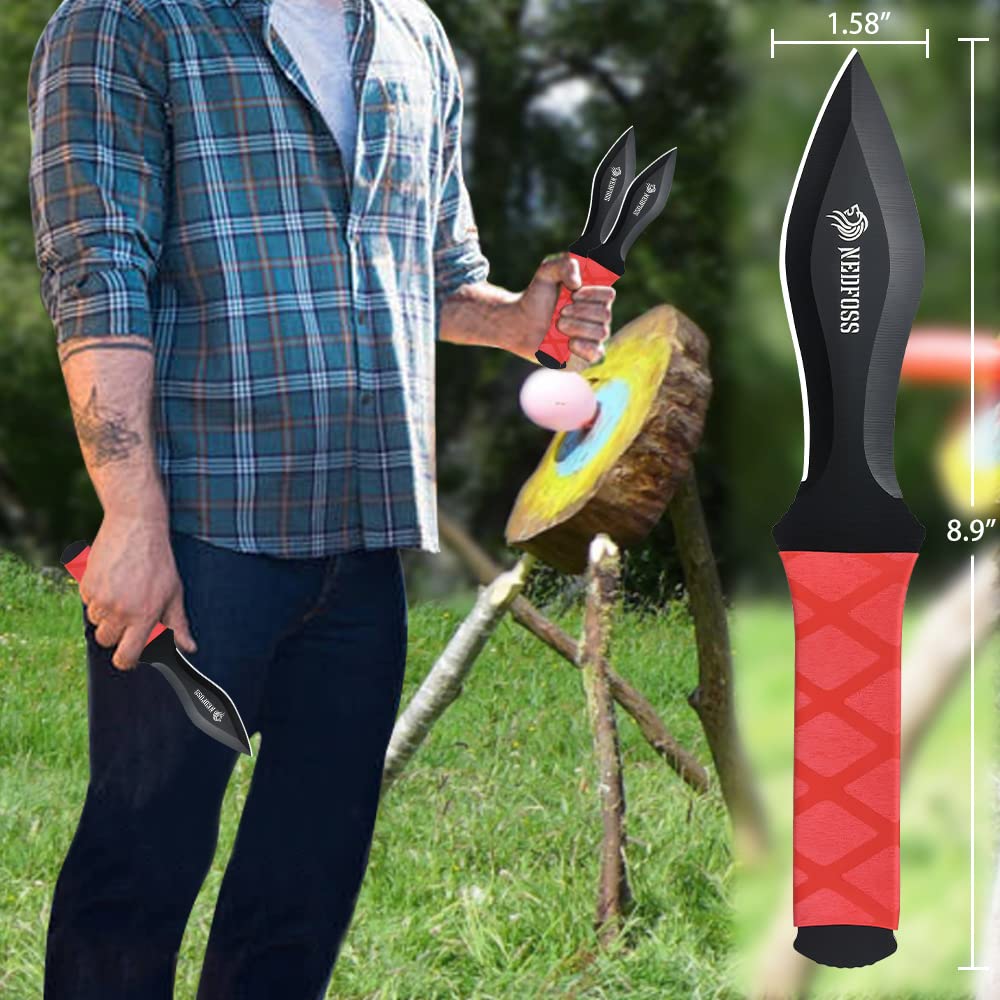 STURDY & WEIGHT-BALANCED THROWING KNIVES: High quality full-tang fixed blade knife is Not Easy to Bend, Deform or Break. NedFoss Throwing Knives Set is designed with well balanced, perfectly weighted and ultra-sharp tips for beginner knife throwers to easily throwing targets.