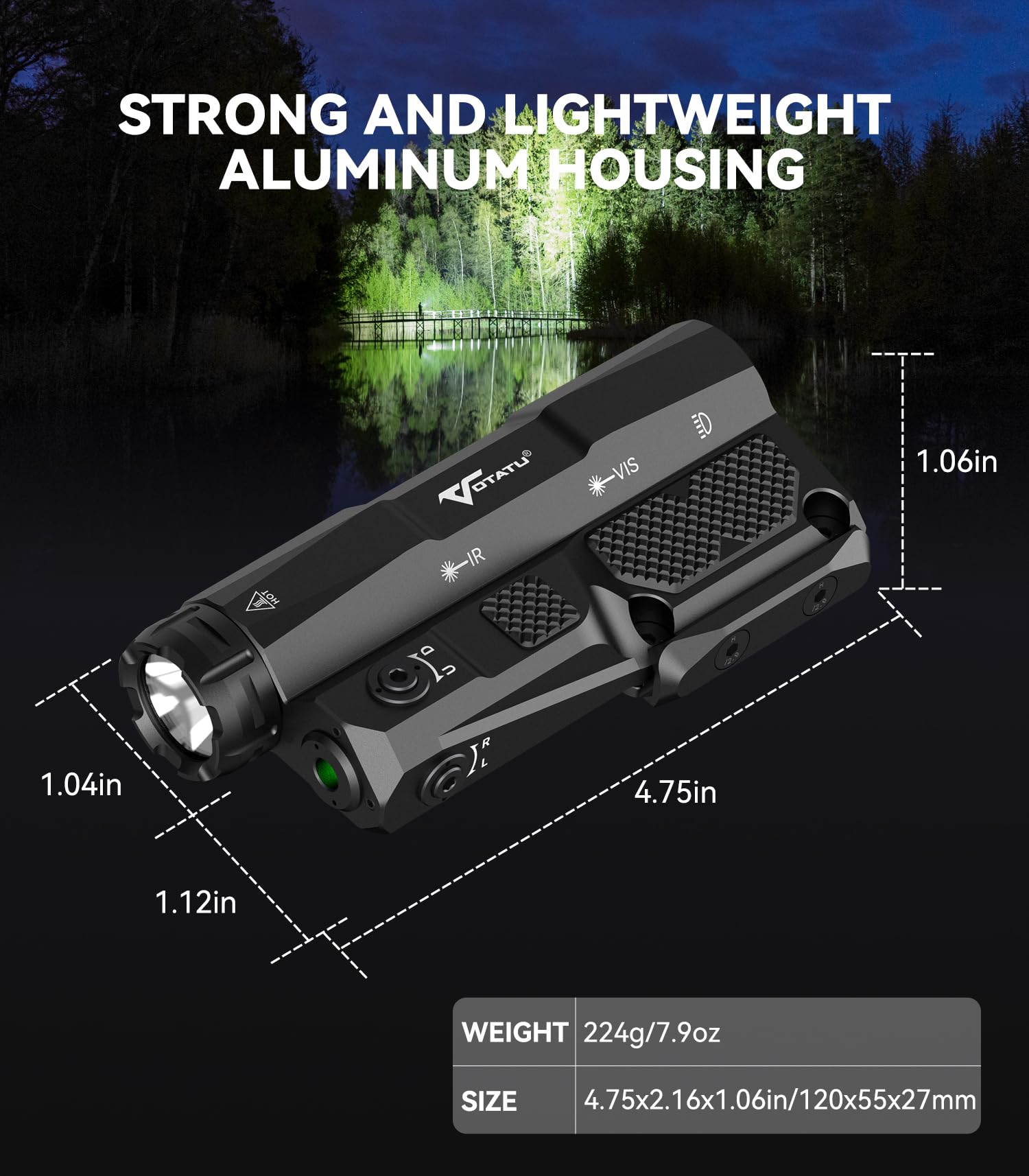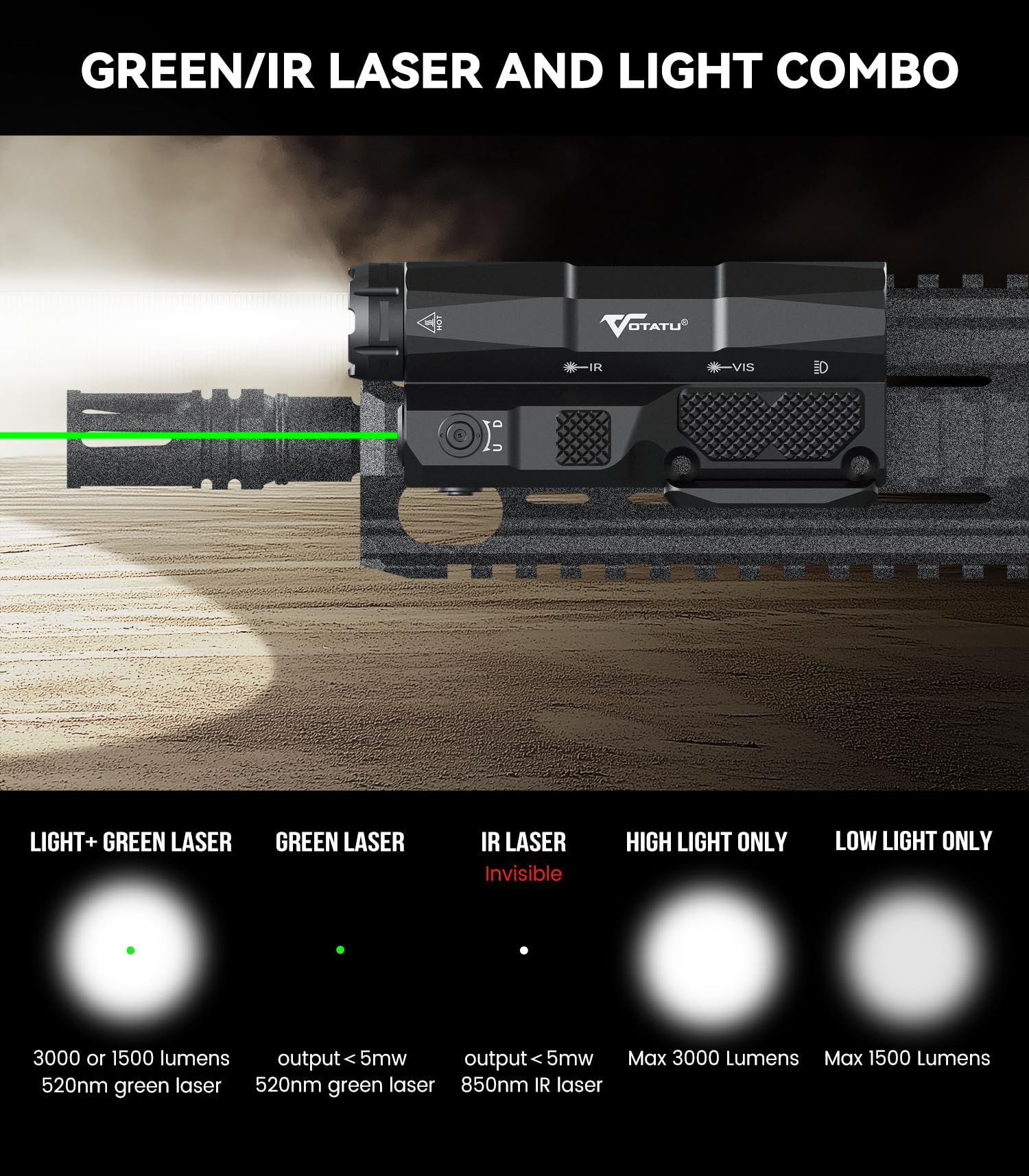 Powerful Illumination and Laser Functions: Featuring a maximum light output of 3000 lumens from LED bulb and a IIIa class green laser with a power output ≤5mW, this device offers remarkable performance, combined with infrared laser, making it the go-to choice for any mission or shooting.