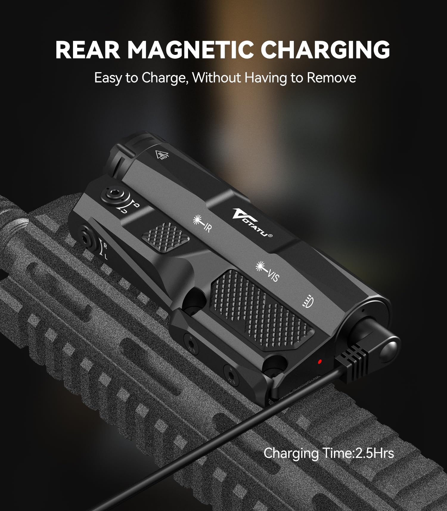 Durable and Convenient Construction: It has a CNC machined aluminum housing with water resistance (IPX6 level), shockproof, recoil proof and corrosion resistant coatings, maintaining maximum durability in various environments.It has a built-in polymer battery and can be easily recharged via a magnetic USB interface.