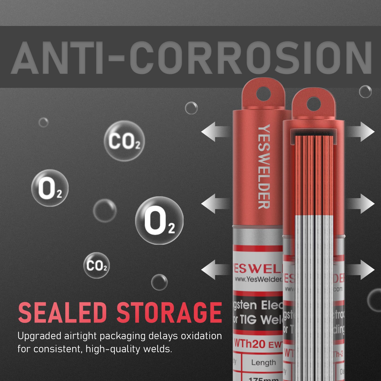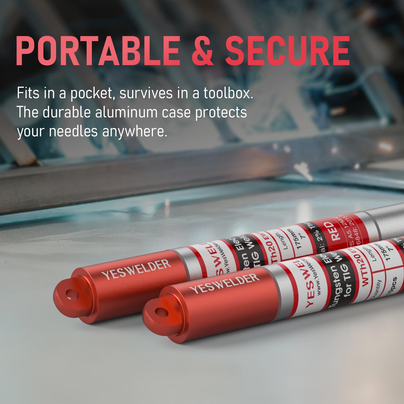 UPGRADED PACKAGING: We've upgraded from a plastic case to a high-strength, sealed aluminum tube. This airtight design prevents electrode oxidation, ensuring stable arc performance and perfect welds. The innovative dual-open design offers easy access to all electrode lengths, while the rugged, compact build is drop-resistant and portable—ready for your pocket, toolbox, or belt loop