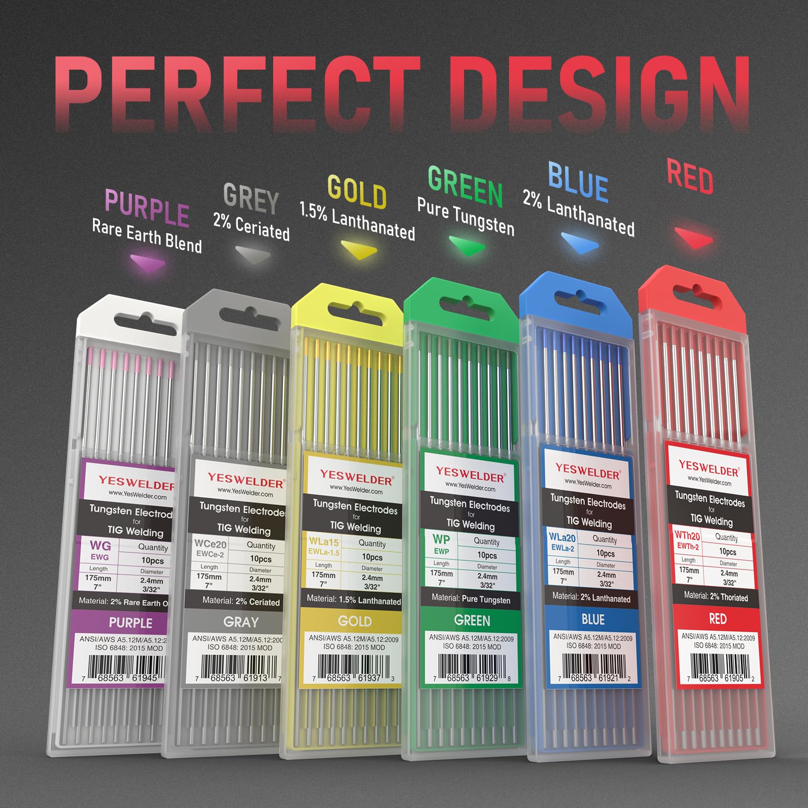 PERFECT DESIGN: By checking the color of the outer packaging, you can quickly and easily distinguish the color and model of tungsten electrodes, saving your time and reducing the possibility of errors