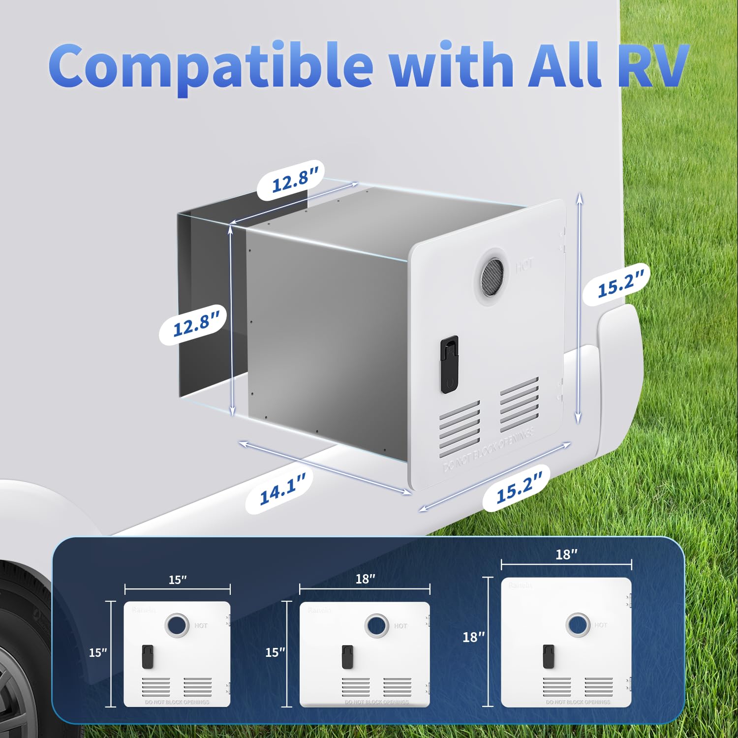 Easy Replacement – Easy to replace most RV water heaters (including Suburban & Atwood 6/10/12-gallon models) with a 12.8" x 12.8" opening (door not included). Compatible door kits (15" x 15", 15" x 18", or 18" x 18") are available for separate purchase.