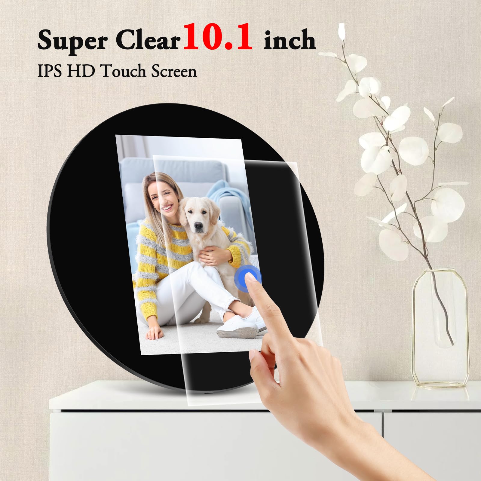【10.1 Inch Touch Screen High Quality Display】: Digital photo frame with 10.1 inch 1280*800 high definition IPS touch screen to display clear and vivid frame slideshow and video at full angle. Online videos help you set up the digital photo frame in minutes, Touch screen to operate and view photos easily.
