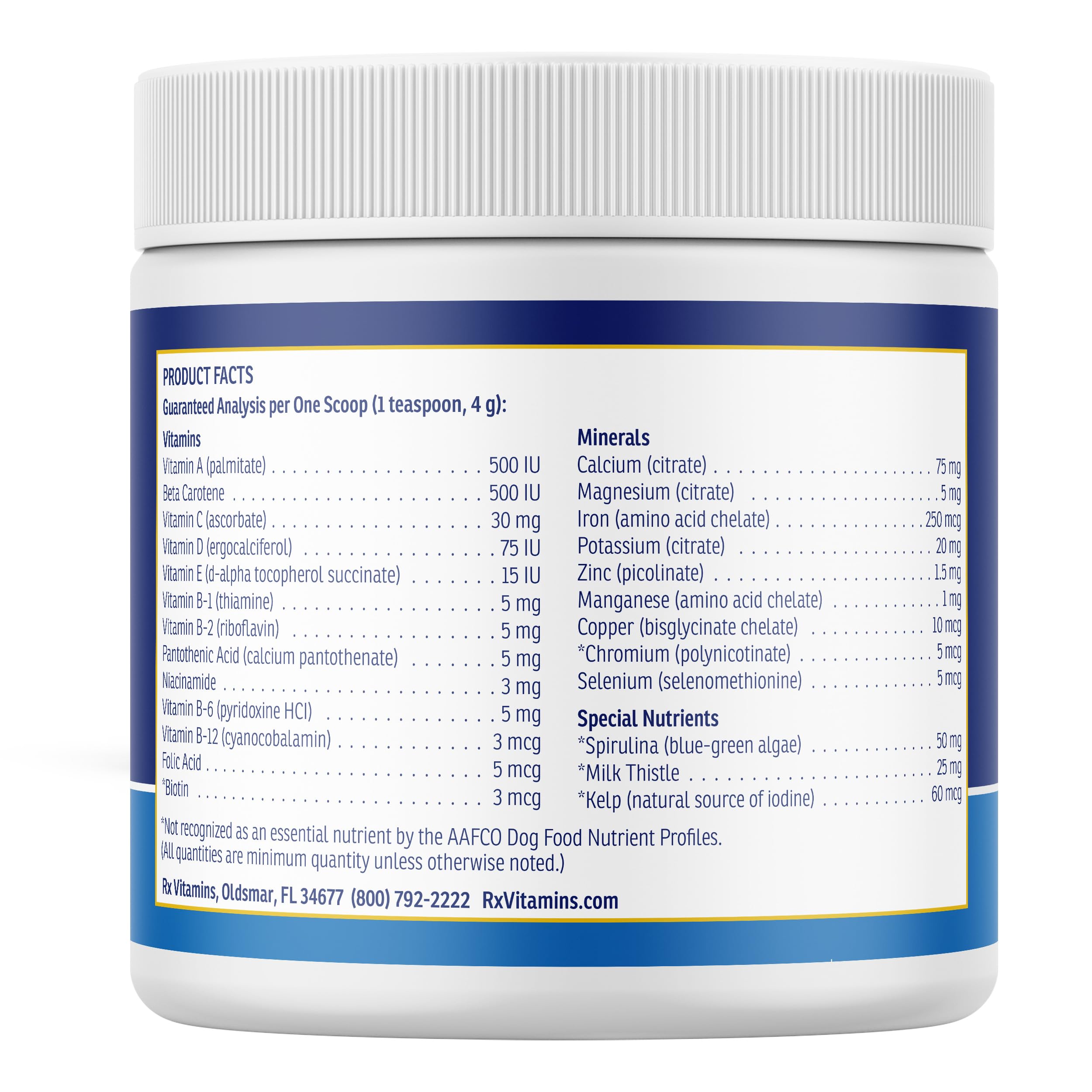 Special Nutrients: Featuring powerful ingredients like Spirulina for dogs to enhance detoxification, Milk Thistle for liver support, and Kelp powder for dogs to improve thyroid health, this dog multivitamins provides comprehensive nutritional support to enhance your dog's well-being.