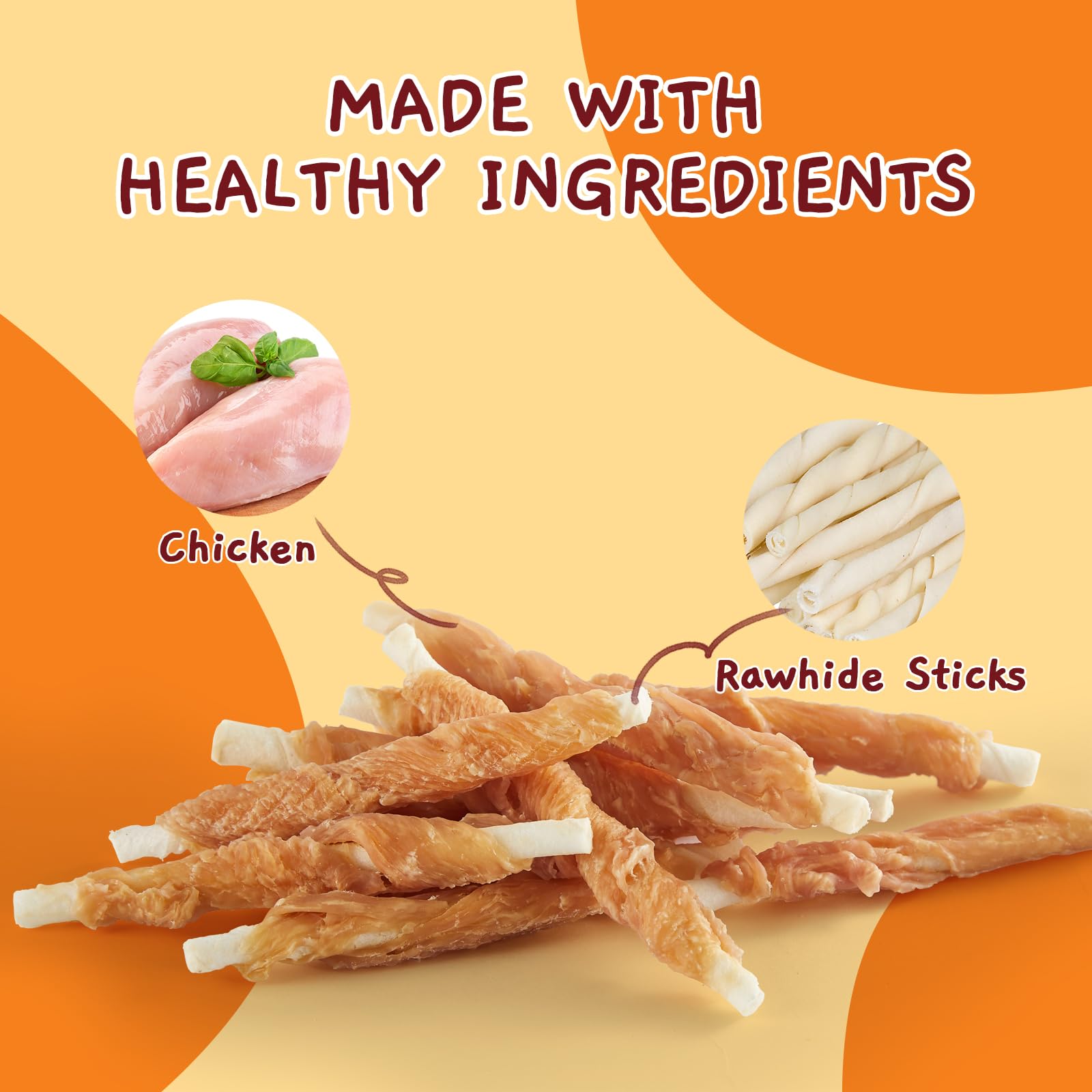 PROMOTES DENTAL HYGIENE: These chicken wrapped rawhide sticks are designed to naturally reduce plaque and tartar buildup, helping to improve your dog's dental hygiene and gum health