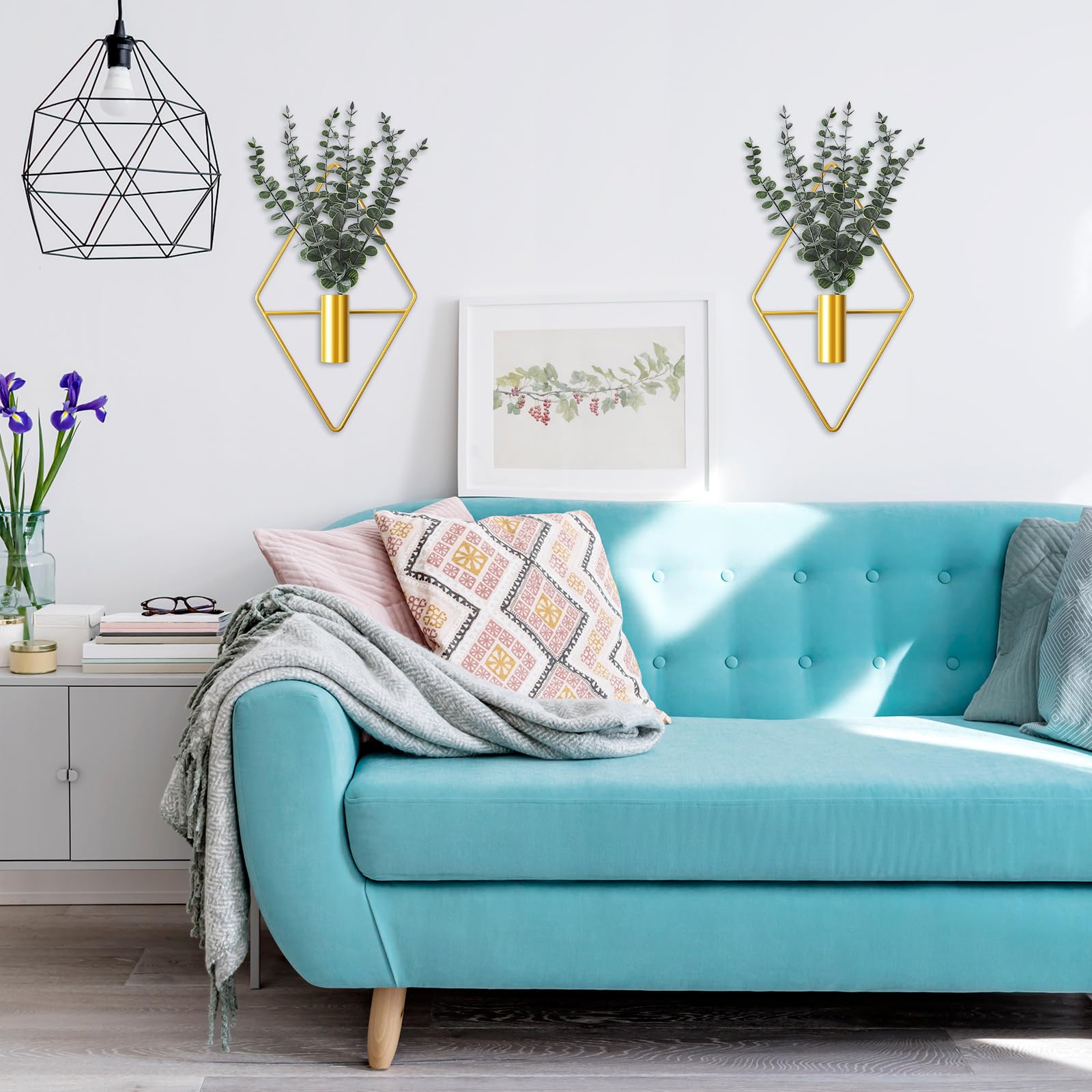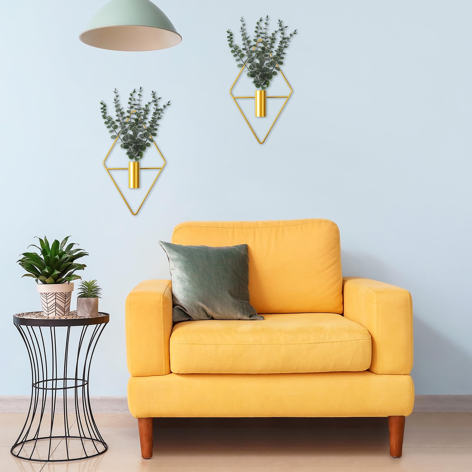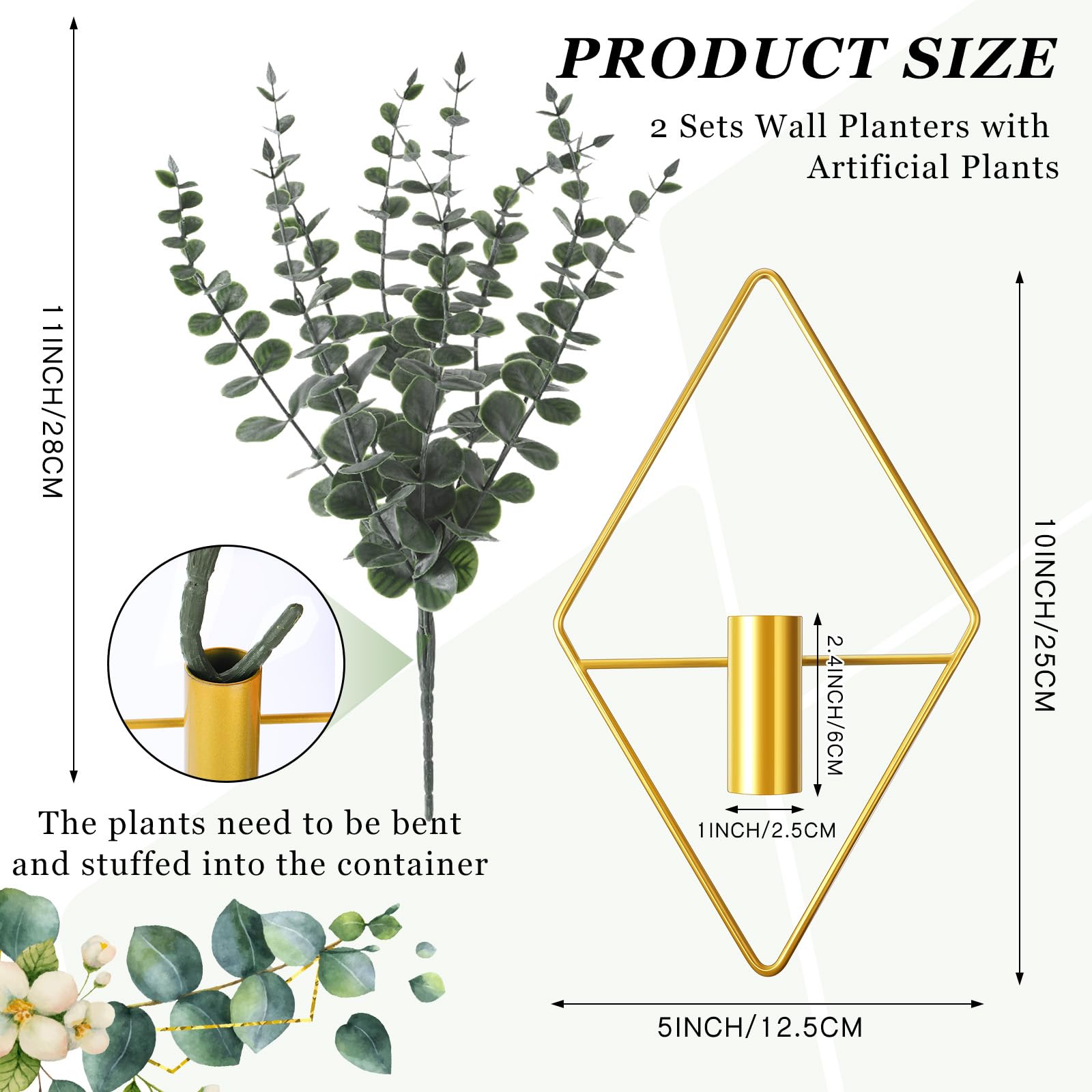 Detailed Sizes: each of the geometric wall planter for indoor plants measures approx. 25 x 12.5 cm/ 9.8 x 4.9 inches in whole size, and there is a 6 x 2.5 cm/ 2.4 x 1 inch inner tube in the center for holding artificial eucalyptus, faux flowers and plants, fake pearl strings, fresh flowers and more; The plant comes with the proper size