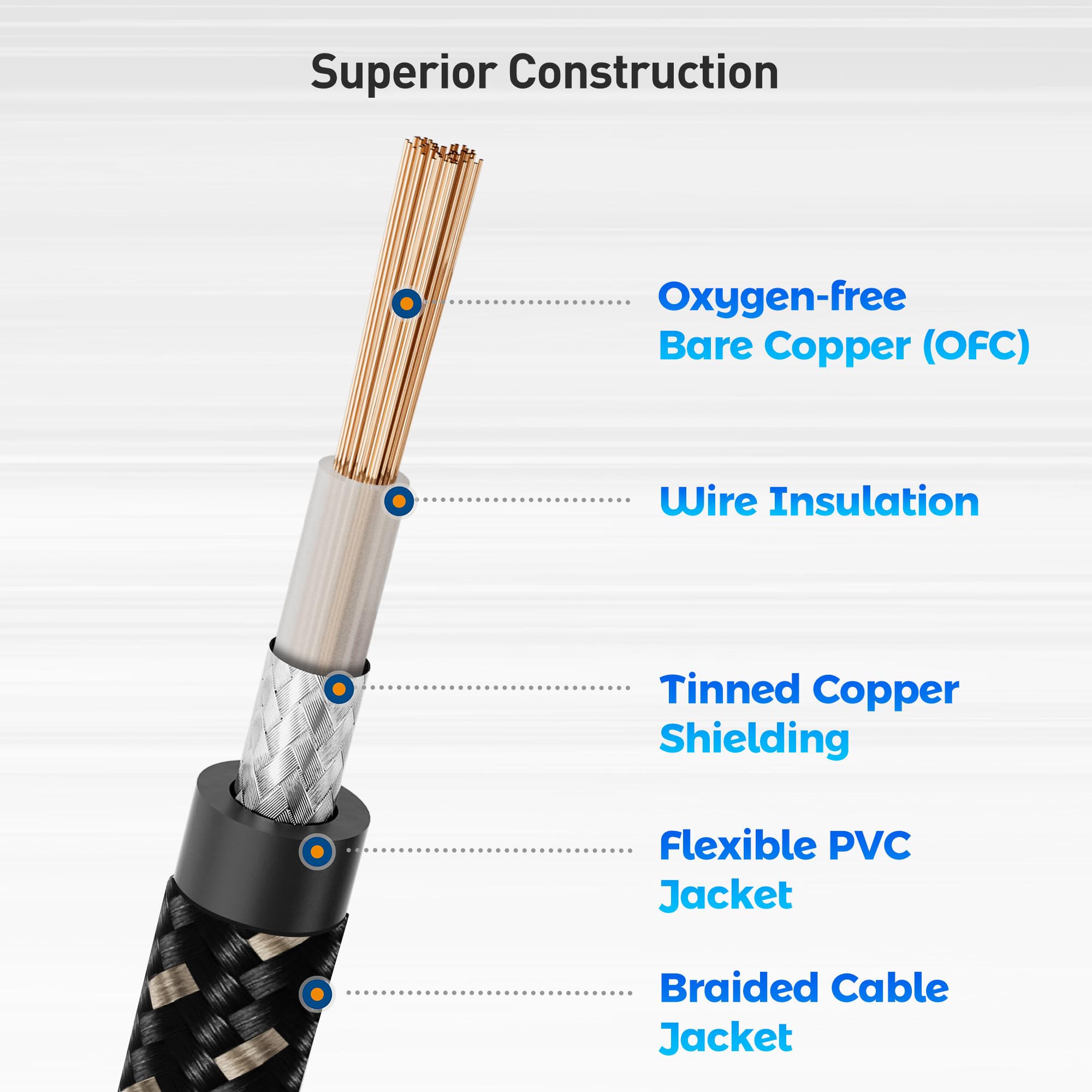 Advanced Construction: The superior design of this guitar amp cord features braid shielding to minimize EMI noise, heavy-gauge oxygen-free copper conductors for pristine sound, and polyethylene insulation for enhanced high-frequency response.