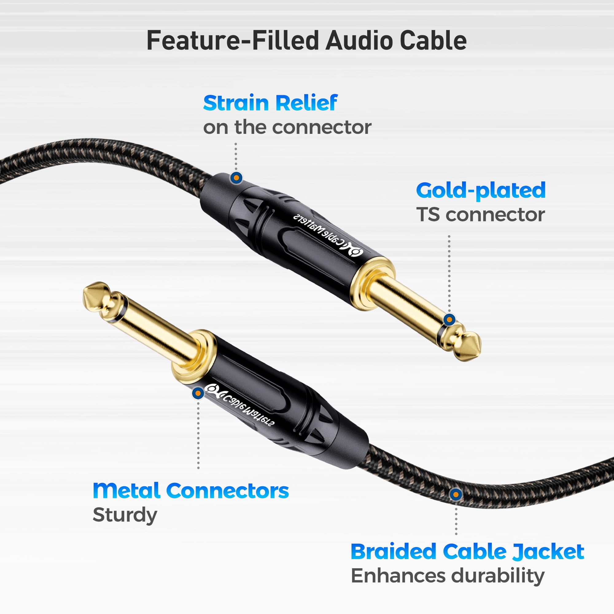 Superior Signal Integrity: Equipped with rugged metal connectors and gold-plated tips, this durable 1/4 inch cable ensures excellent signal transmission and easy handling, ideal for live performances and studio sessions.