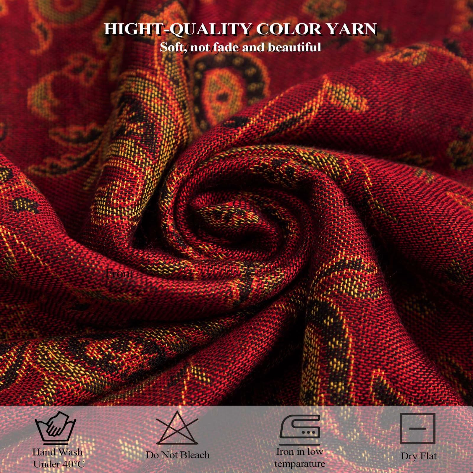 BEAUTIFUL PATTERN AND COLOR COMBINATIONS DESIGNED, NECCESARY WARDROBE ACCESSORY: Women scarf is nicely woven pashmina feel pattern design, the colors are gorgeous and vibrant;It draped beautifully, showcasing the stunning design with perfect grace. Beautiful color collection with neat tassel fringe, just wearing it, you will be very attractive and get lots of compliment.