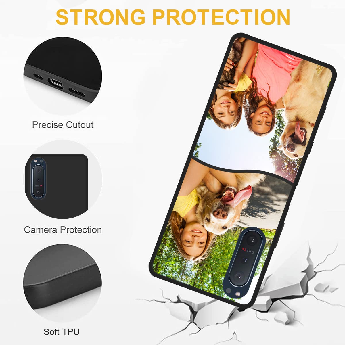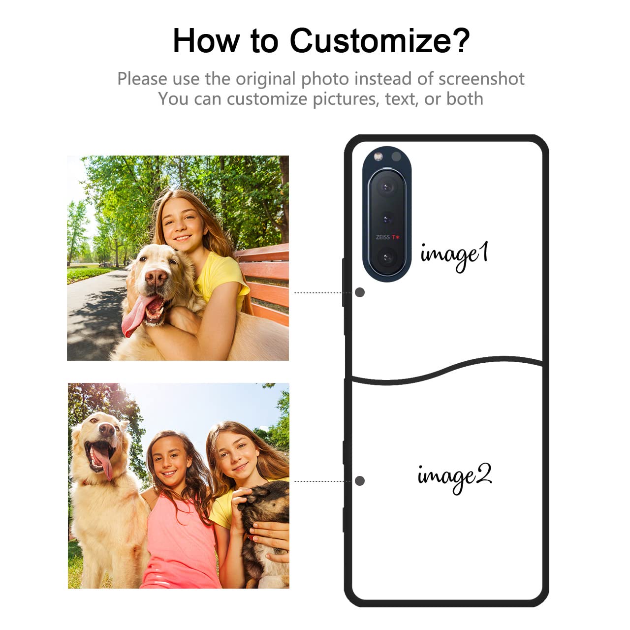 Why choose us? Feature: 1. Clicking Customize then uploading your pictures and add it into the Cart to custom. Cute, Stylish Case Cover Printed with certified scratch resistant ink. 2. Only for Sony Xperia 5 II and supporting wireless charging. 3. No peeling and scratch-resistant with precise hole position. 4. Support wireless charging without taking off your phone case. Wide usage: Custom multiple pictures for your phone, personalized customized phone phone case. You can make your own phone case, adding some different designs according to your own preferences, such as a photo of yourself, your family, or your pet, beautiful patterns, a life motto, other logo and more. Specifications: Material: TPU Size: 6.1 Inch Color: black Quantity: 1 piece Package contents: 1 phone case Warm notice: 1.Before paying, check your design and model is correct. The personalized product usually needs 2-3 days to process, please be patient. 2.Please feel free to contact us if you have any questions. We are always there for you. Dedicated customer one on one service with quick feedback.