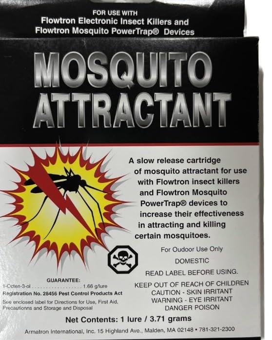 Flowtron MA-1000 Octenol Mosquito Attractant - 2 pack Contains Two slow-release cartridges containing 1660 mg of octenol mosquito attractant each. Use it with any Flowtron Bug Zapper product (BK-15, BK-40, BK-80, MC-9000, FLW 15060, FC-8800) to get better results. How does it work? The attractant, in combination with the UV Light in the Bug Zappers, attract more insects and kills them. Why should you buy it? While our competitors offer only one method of attracting insects (UV light), we offer Octenol along with the UV light, which increases the effectiveness of all Flowtron bug zappers. Note: Please use Octenol only for outdoor applications. DO NOT USE IT INDOORS Compatible With Flowtron Products Flowtron BK-15 Bug Zapper (0.5 acre coverage) Flowtron BK-40 Bug Zapper (1 acre coverage) Flowtron BK-80 Bug Zapper (1.5 acre coverage) Flowtron FLW 15060 Bug Zapper (1.5 acre coverage) Flowtron MC-9000 Residential Bug Fighter (2 acre coverage) Flowtron FC-8800 Diplomat Fly Control Device (Indoor/Outdoor)