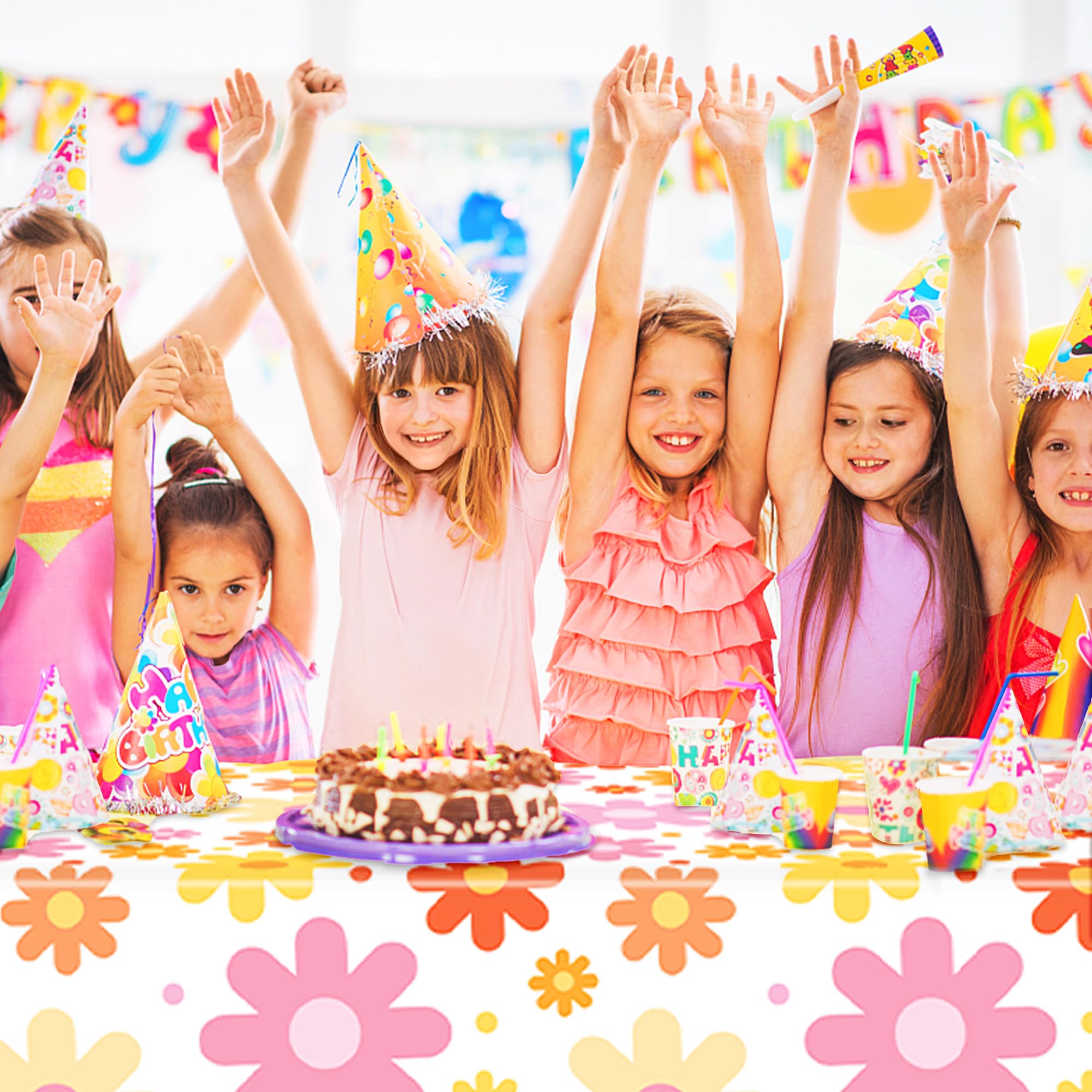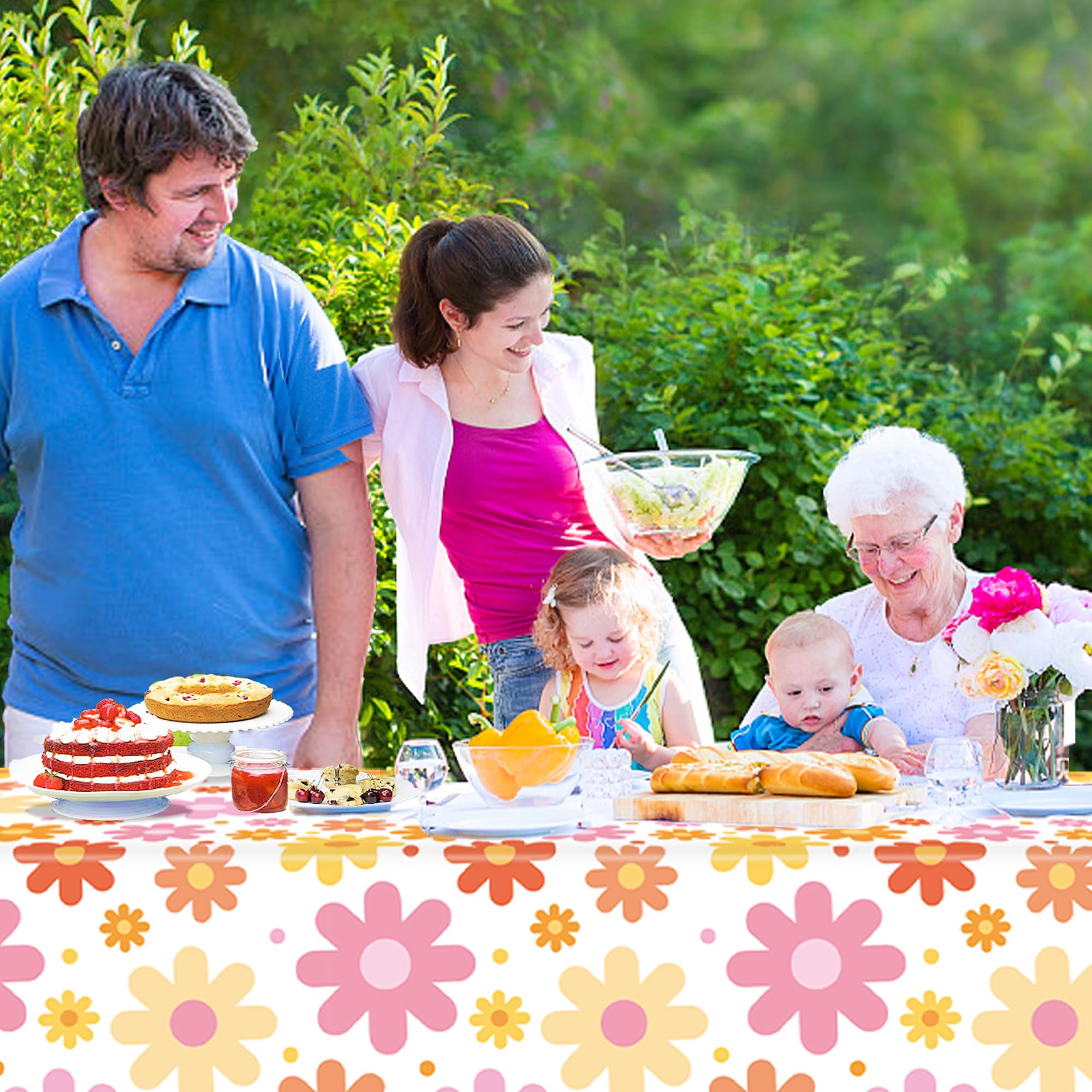 Durable Material: our groovy daisy tablecloth are made of high quality PE material; durable and lightweight; not easy to tear; with a smooth touch, this disposable plastic table covers can protect your table from scratch and have a effect of waterproof and oil-proof.