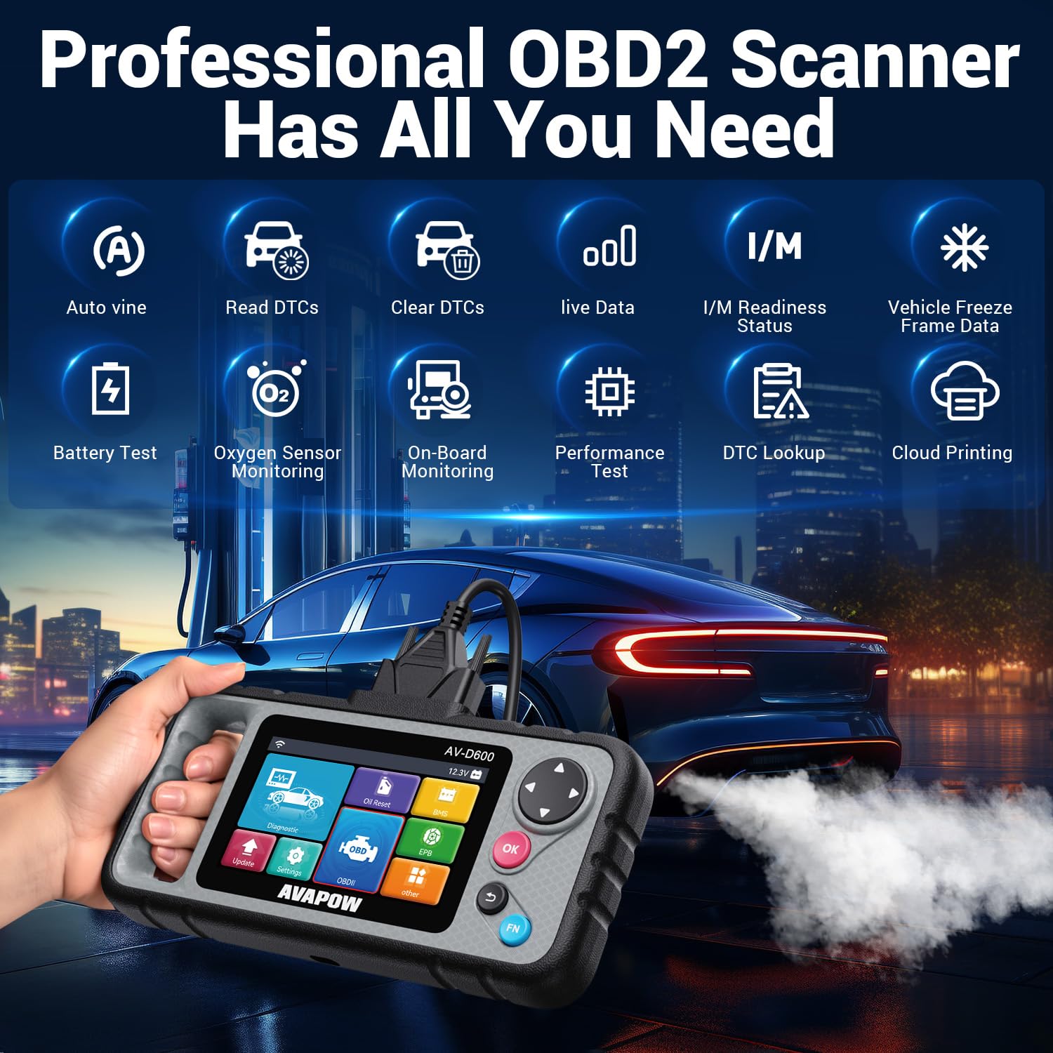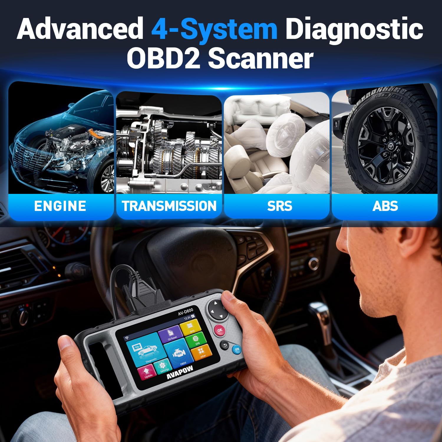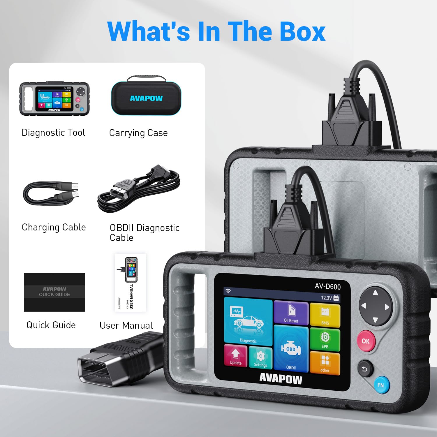 AVAPOW's Exclusive Handle Makes It Easier to Use: Most car scanners are slippery and hard to hold, but this one has a non-slip ergonomic handle. Hold it with one hand during long checks (like looking under the car or switching between vehicles), and the curved grip won’t tire your hands. It’s also easy to carry or store in your glove box—perfect for on-the-go fixes.