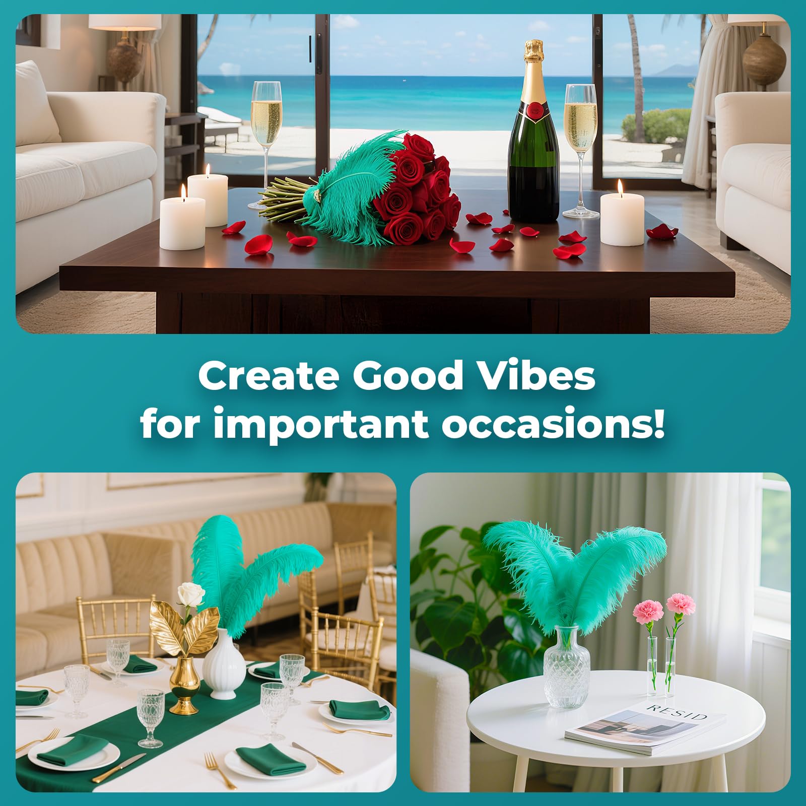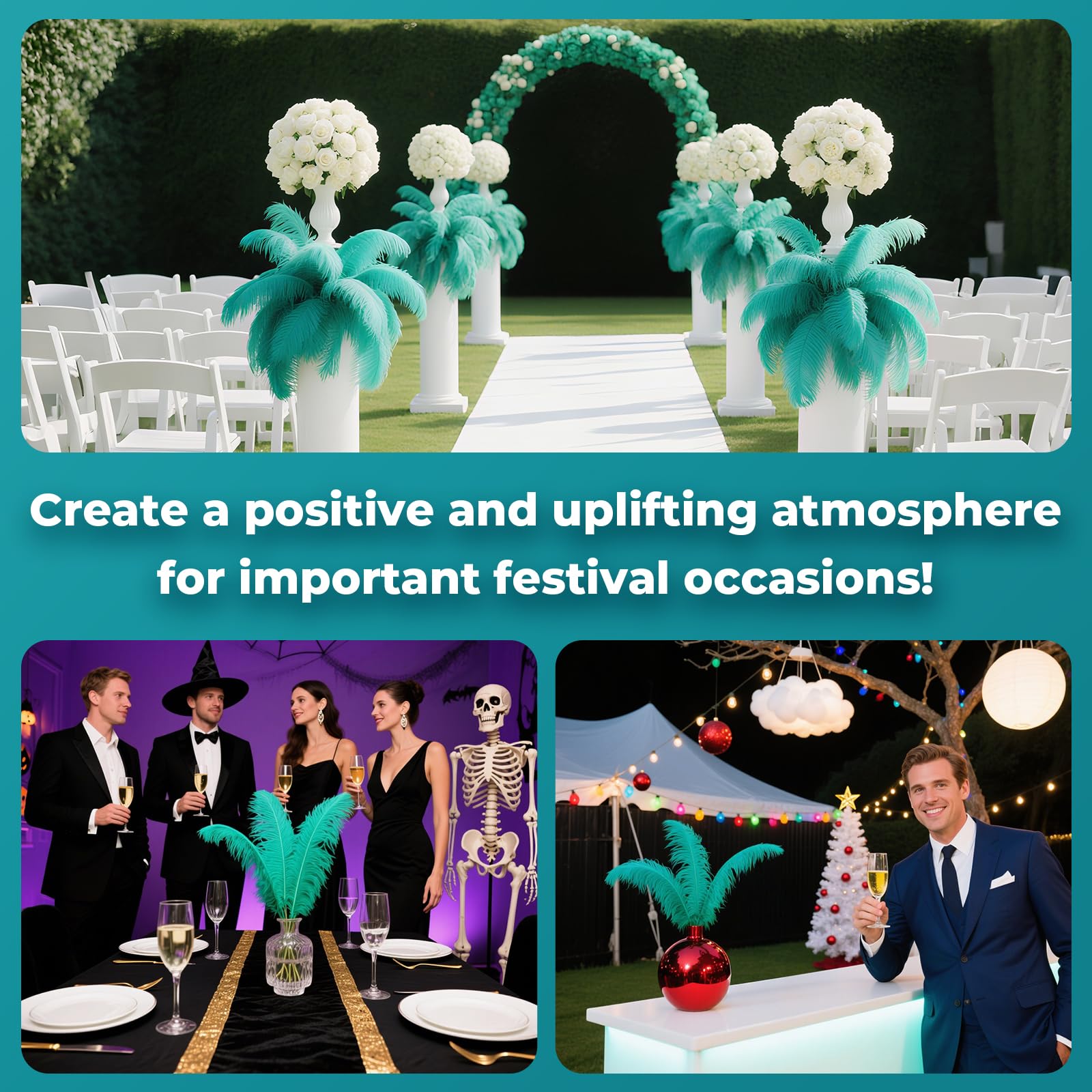 ❤Perdect for Most Occasions: Ostrich feathers are perfect for wedding centerpiece, diy clothes and accessories, dreamcatcher, feather garland, Halloween decoration, cake decor, masquerade decor.