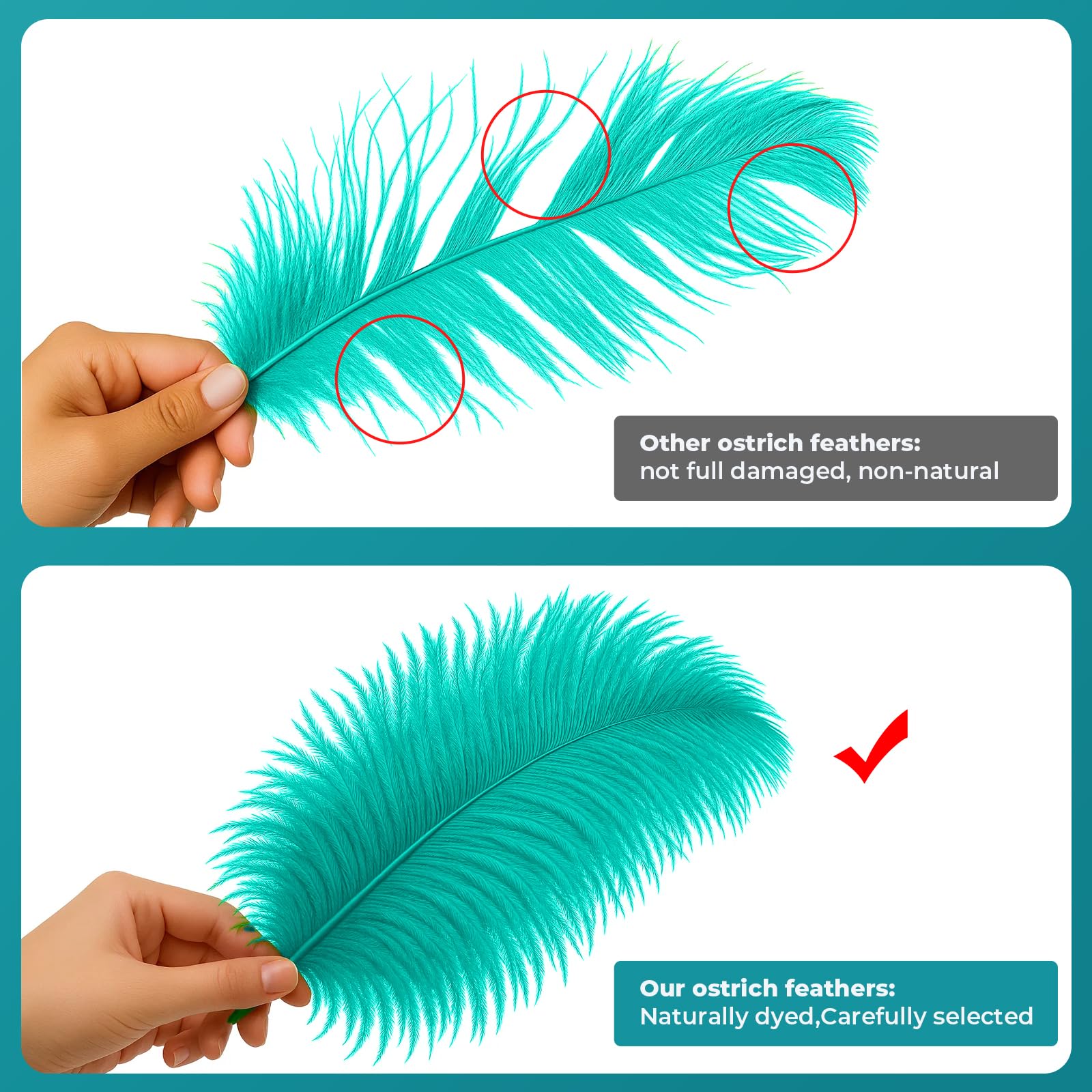 ❤Cruelty-Free Feathers: 100% genuine natural Ostrich Feathers Plumes. All the feathers lost naturally. No plucking needed and no ostriches were harmed.