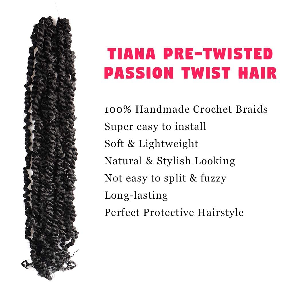 100% Handmade Crochet Braids : our tiana passion twists are handmade (not manufactured) with natural looking, since they are already twisted, so it is super easy to install. Especially for beginners, you can show your personality and charming effortlessly.