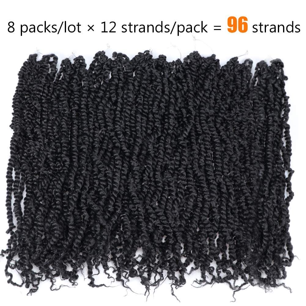Passion Twist Hair Specification: 8 packs a deal ,12 strands/ pack, 96 strands in total, usually 7-9 packs can full a head. if you want fuller hairstyle or to be unique, it is so easy to do DIY hairstyles with different color.