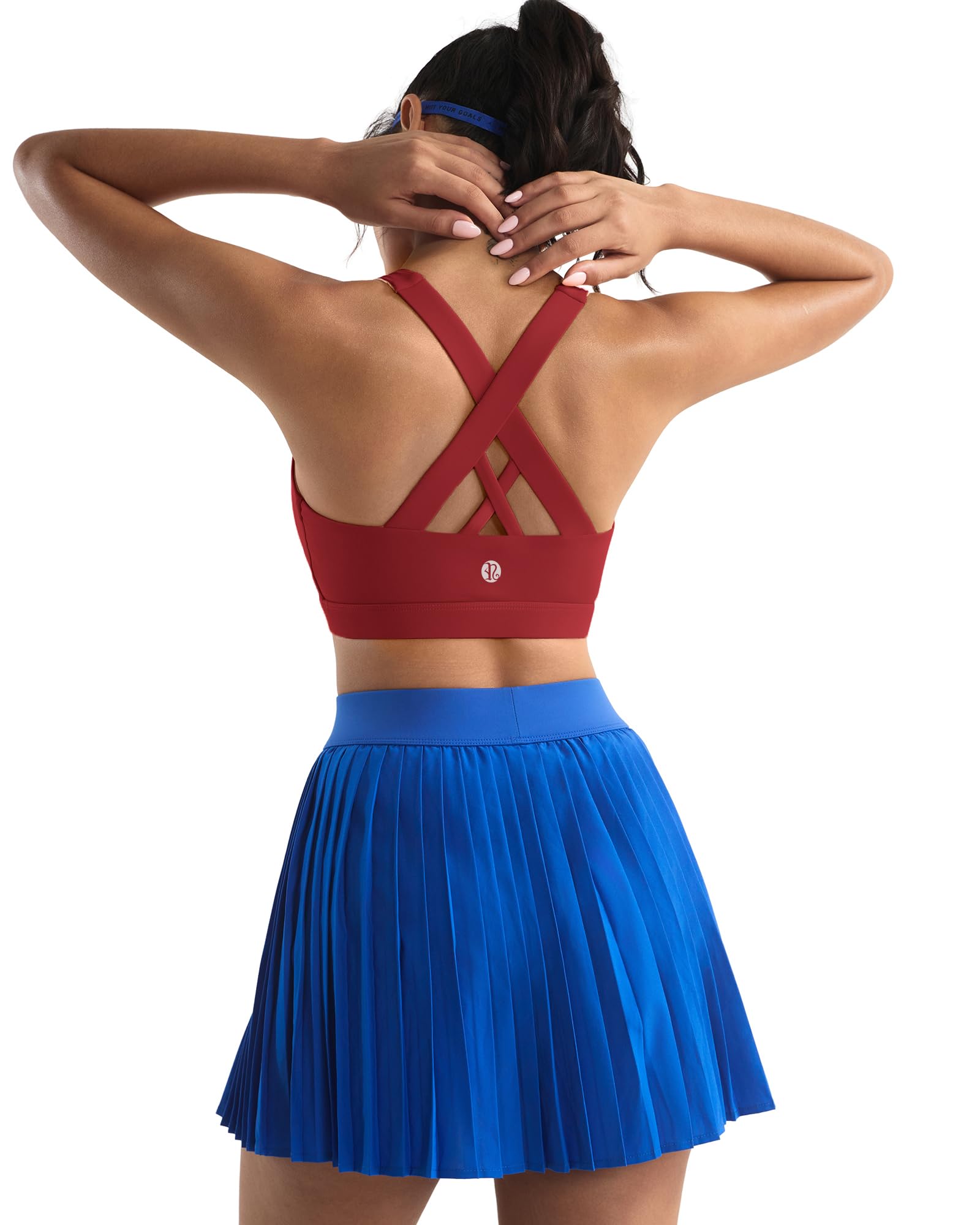 UNIQUE DESIGN:Criss Criss-cross back detailing gives the V-neck Bra its signature style. But it doesn't just look good, it's hard working. Heat transfer tech, a lined shelf bra, and the sports bra for women wrapped in durably soft performance stretch fabric keep you comfy and supported.The cotton-like meterial, soft and comfortable to wear.Crisscross back straps let you twist with ease, Sexy Crossback design offers a extra back support, fashionable and stylish, Stretch Fit Sports Yoga Gym Bra.