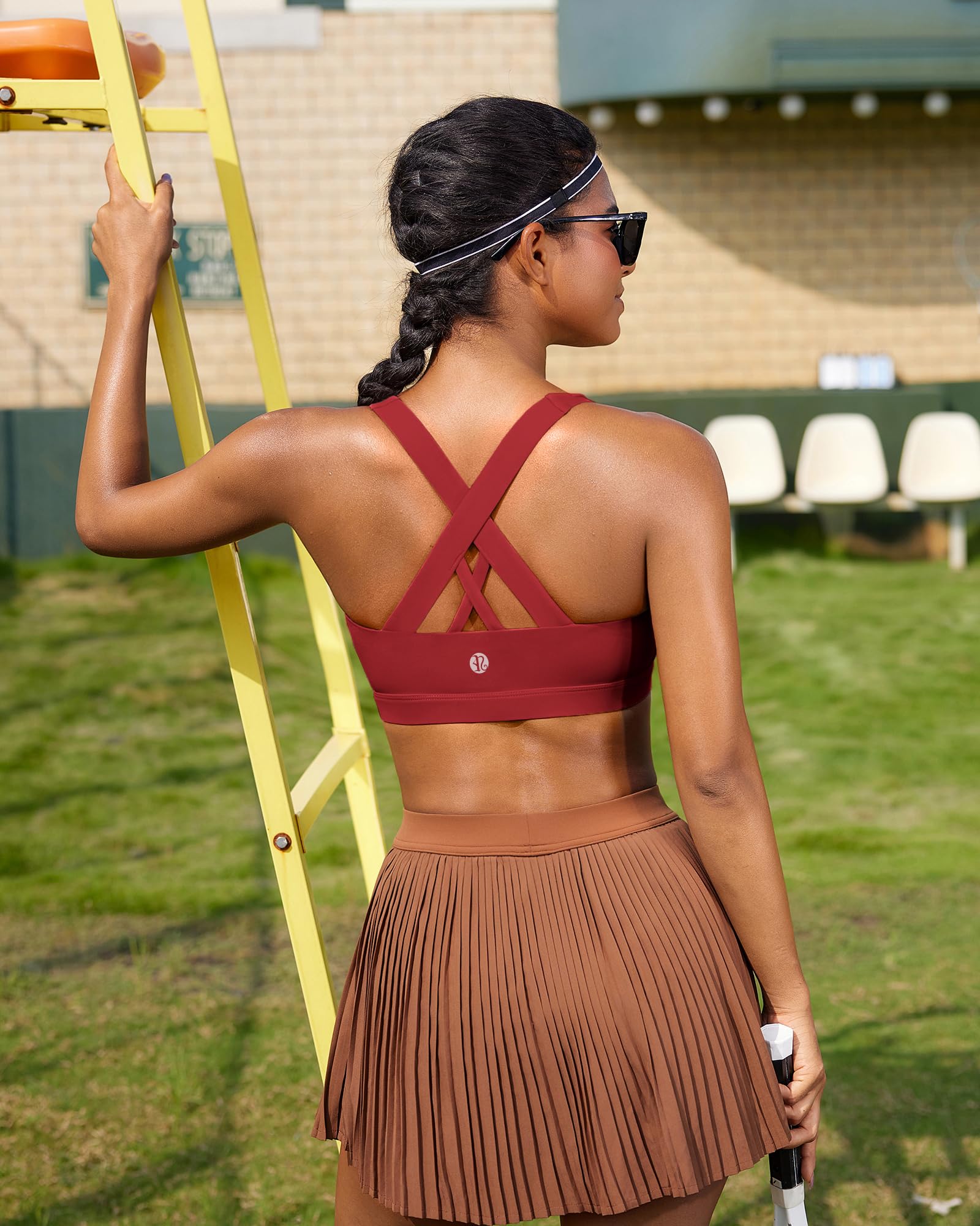 WHY WE MADE THIS:Need a sports bra that does it all? Look no further! This sweat-wicking cross-strap bra gives you the coverage and support you need for yoga, run, and the gym—without restricting your movement or breath. fabric has added lycra that allows the bra to stretch with you and retain its shape over time. Slip in optional, removable cups for full coverage—if you want it. This bra is intended to provide medium support for great shape retention, long-lasting comfort.