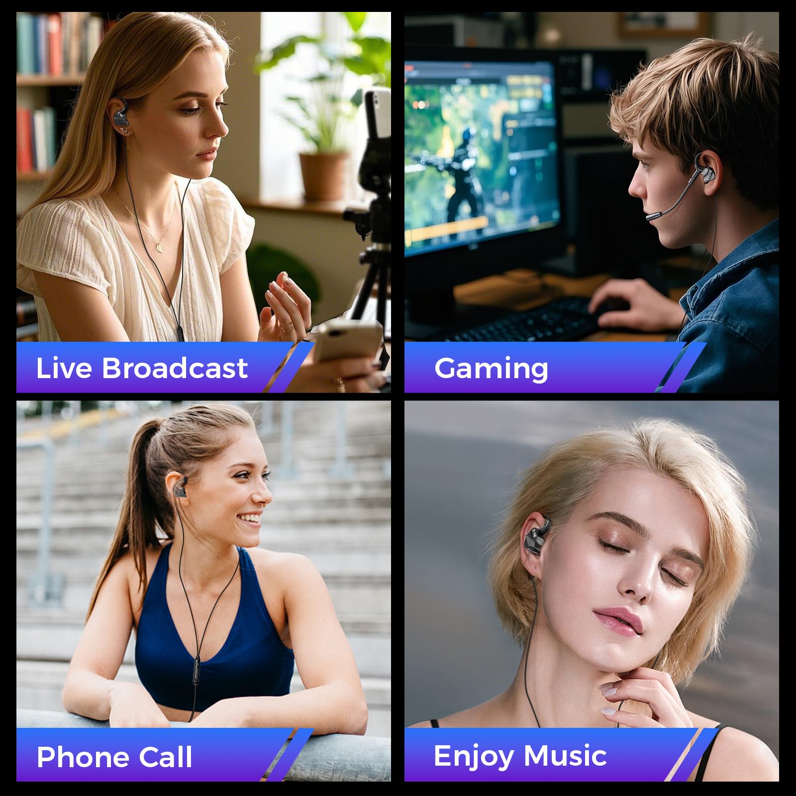 🎧Lightweight & Ergonomic Fit:Enjoy hours of fatigue-free use with ultra-light in-ear monitors featuring soft PU ear hooks for a secure and comfortable fit. Ideal for extended gaming sessions, workouts, or travel.