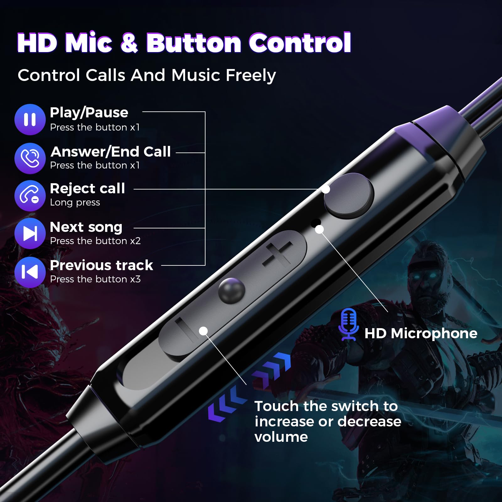 🎧 Immersive HiFi Sound:Built with a 10mm custom dynamic driver and low 16Ω impedance, these gaming earbuds deliver powerful bass, crisp mids, and precise treble. Hear every footstep, explosion, and gunshot with enhanced clarity and realism.