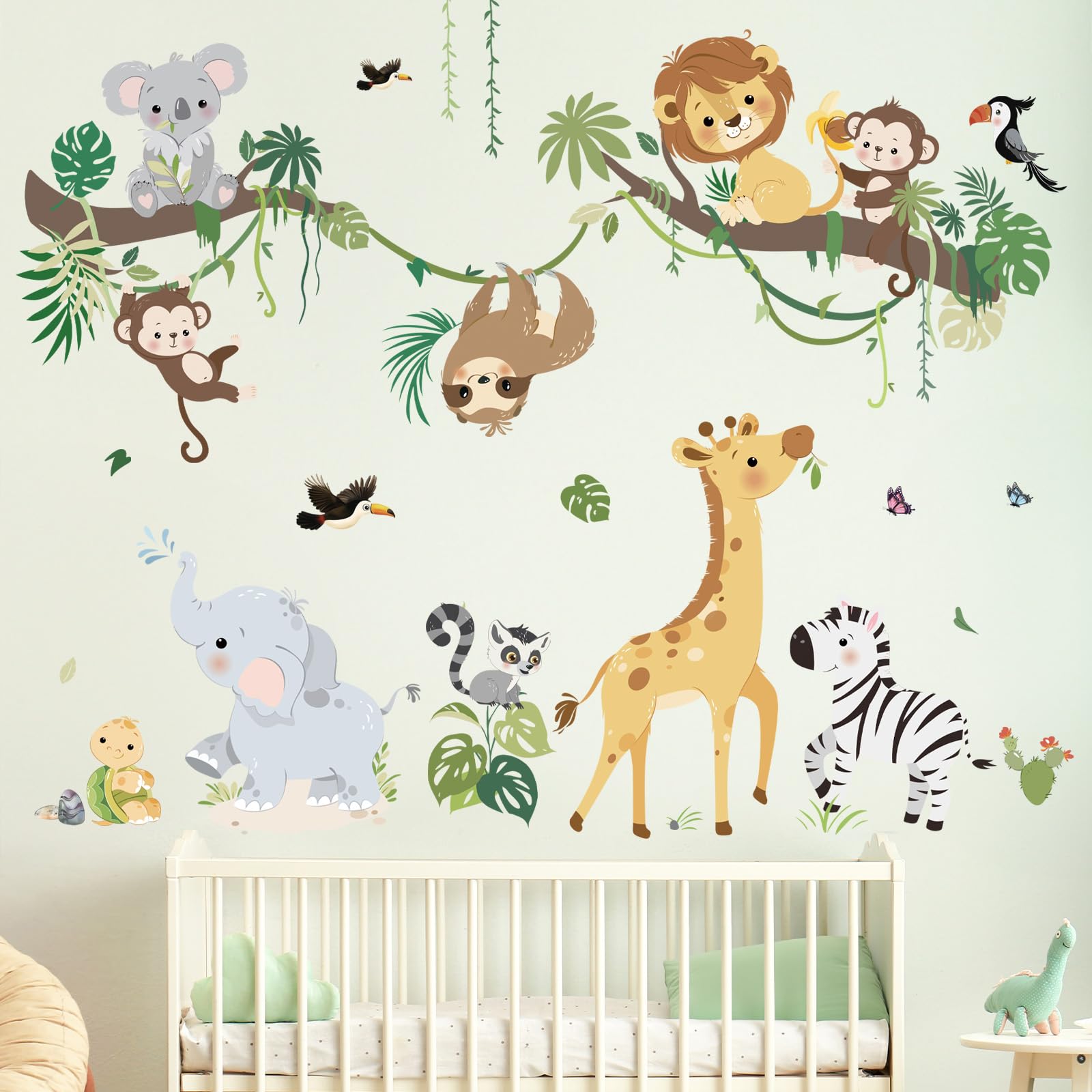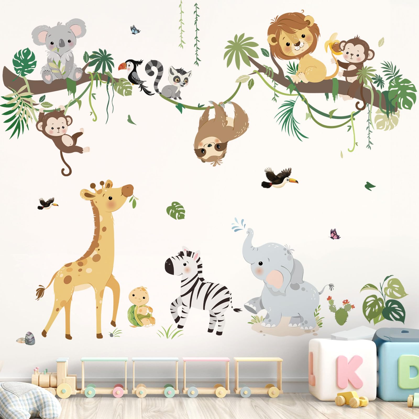 decalmile jungle animals climbing tree wall decals are perfect to decorate children room, living room, playroom, classrooms and more.