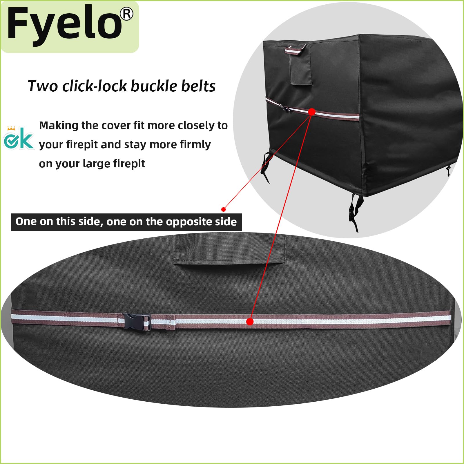 ☑ 【2 long side buckle straps】2 sets of side buckle straps can be adjustable, make the cover stay more firmly on your large rectangular firepit.