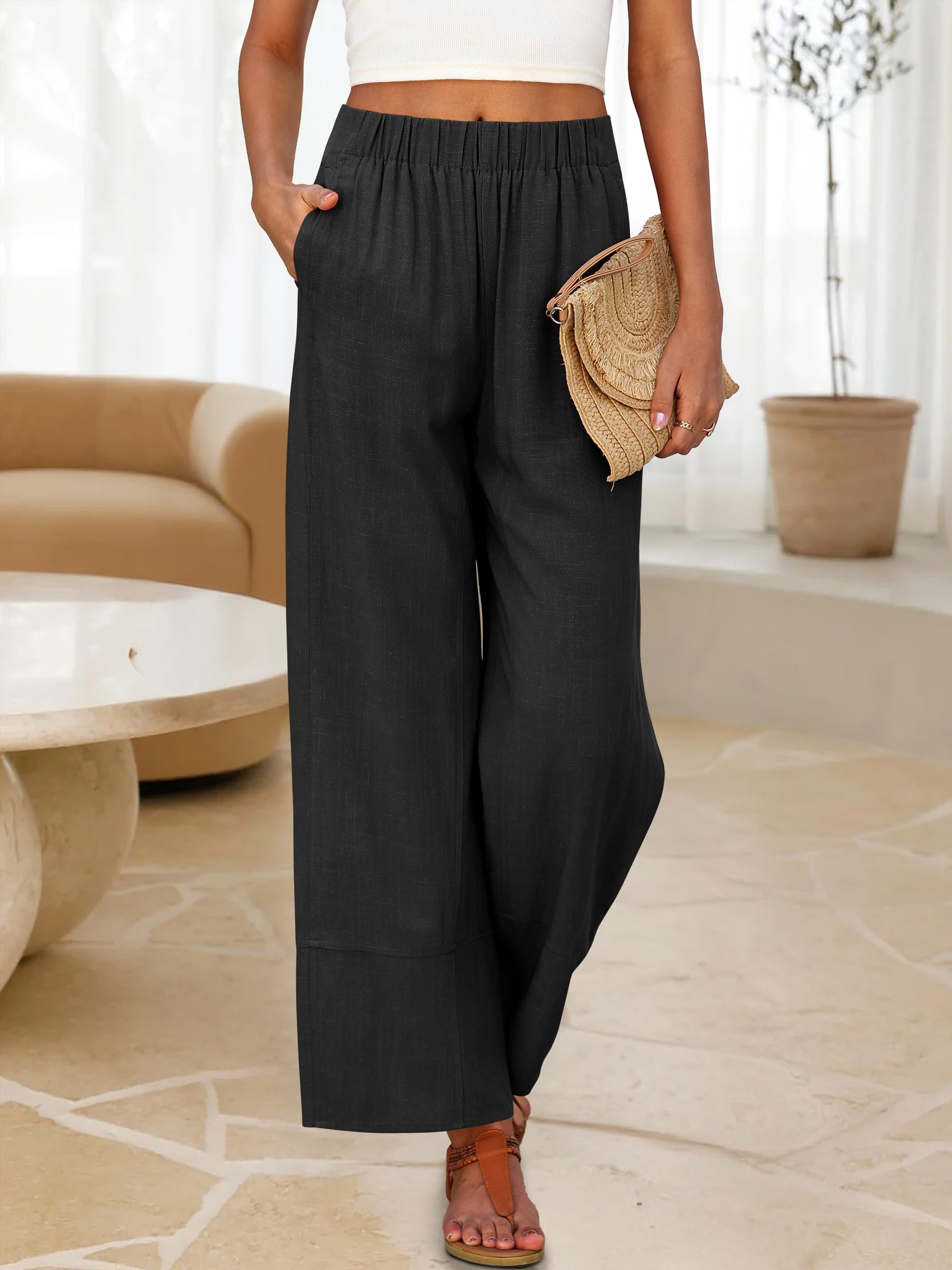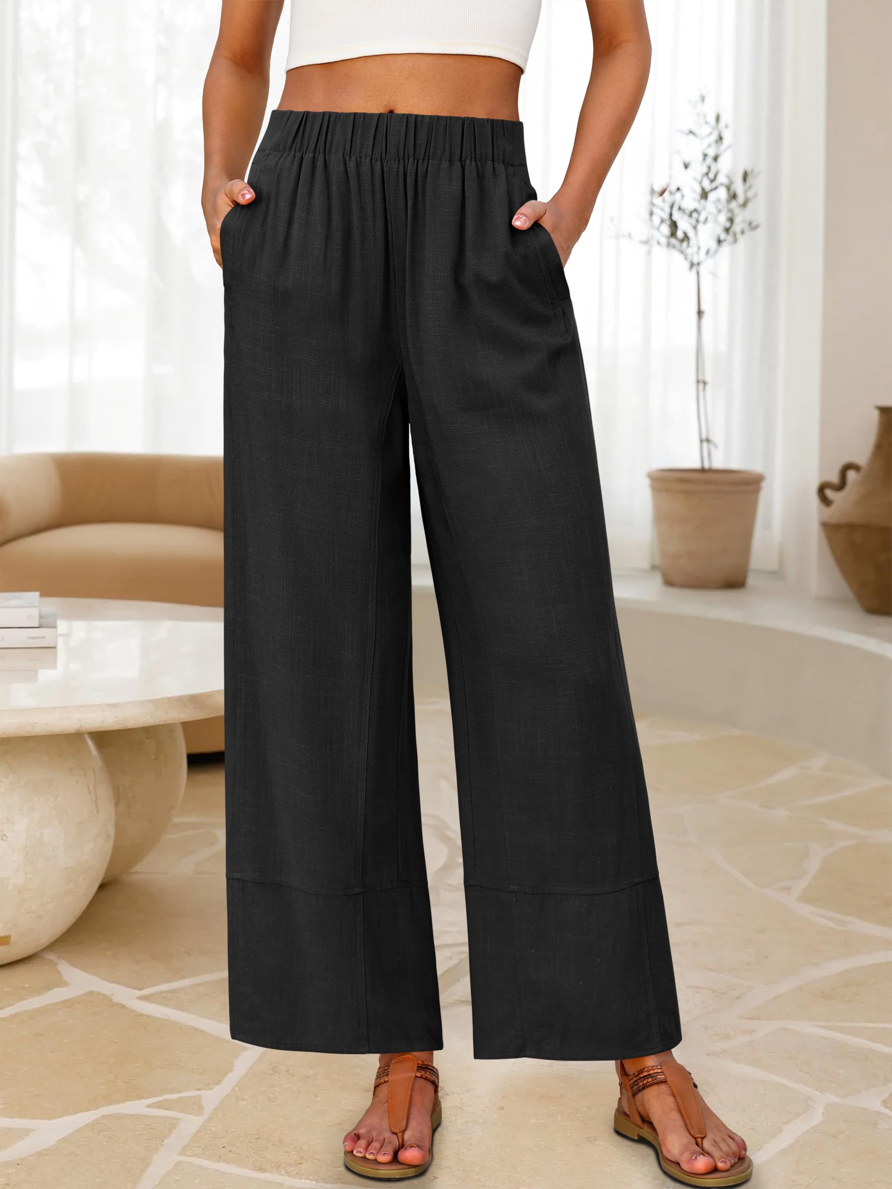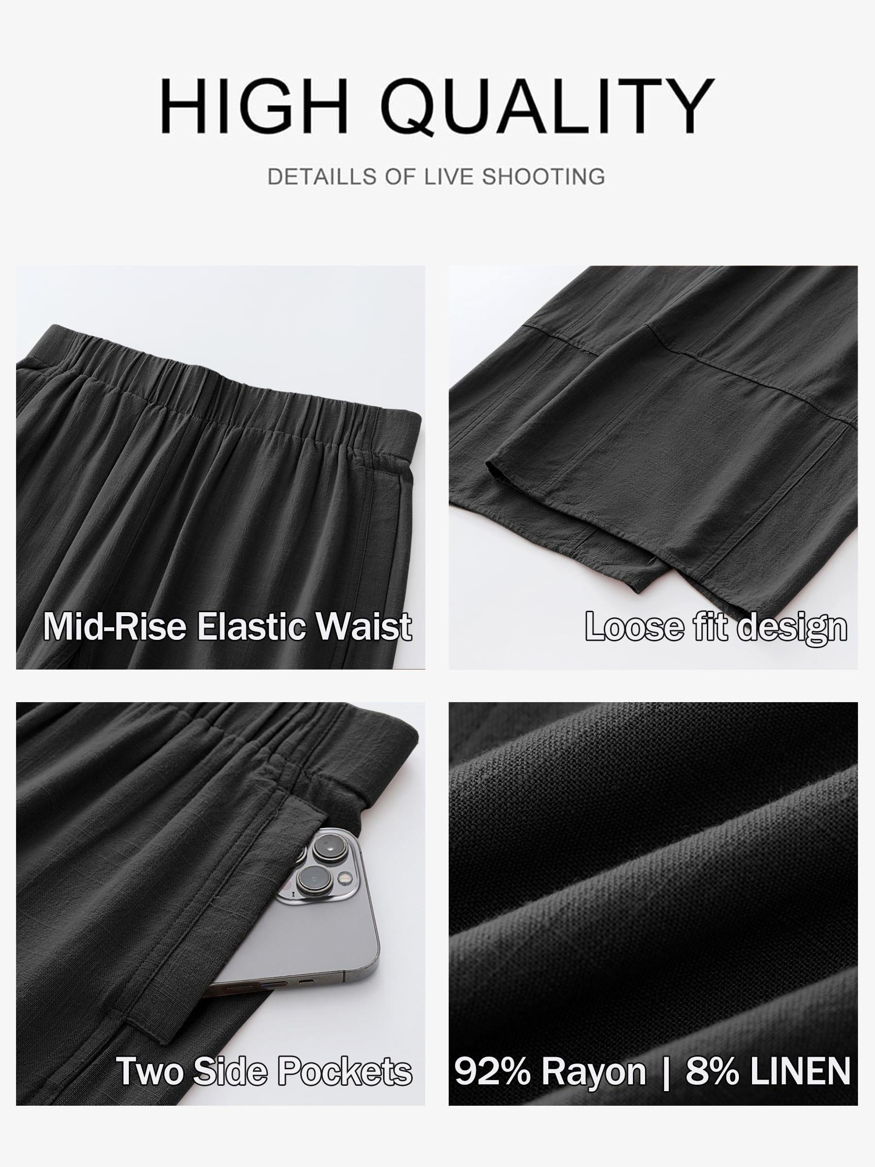 Features - womens linen pants, mid-rise elastic waist, wide leg, and loose fit design.This wide leg linen pants fits seamlessly into diverse scenarios—whether you’re lounging at home, relaxing, practicing yoga, or stepping out for shopping, brunches, beach outings and dates. It also works well for dinners, travel and festivals; its breathable fabric keeps you comfortable across casual, leisure and daily moments.