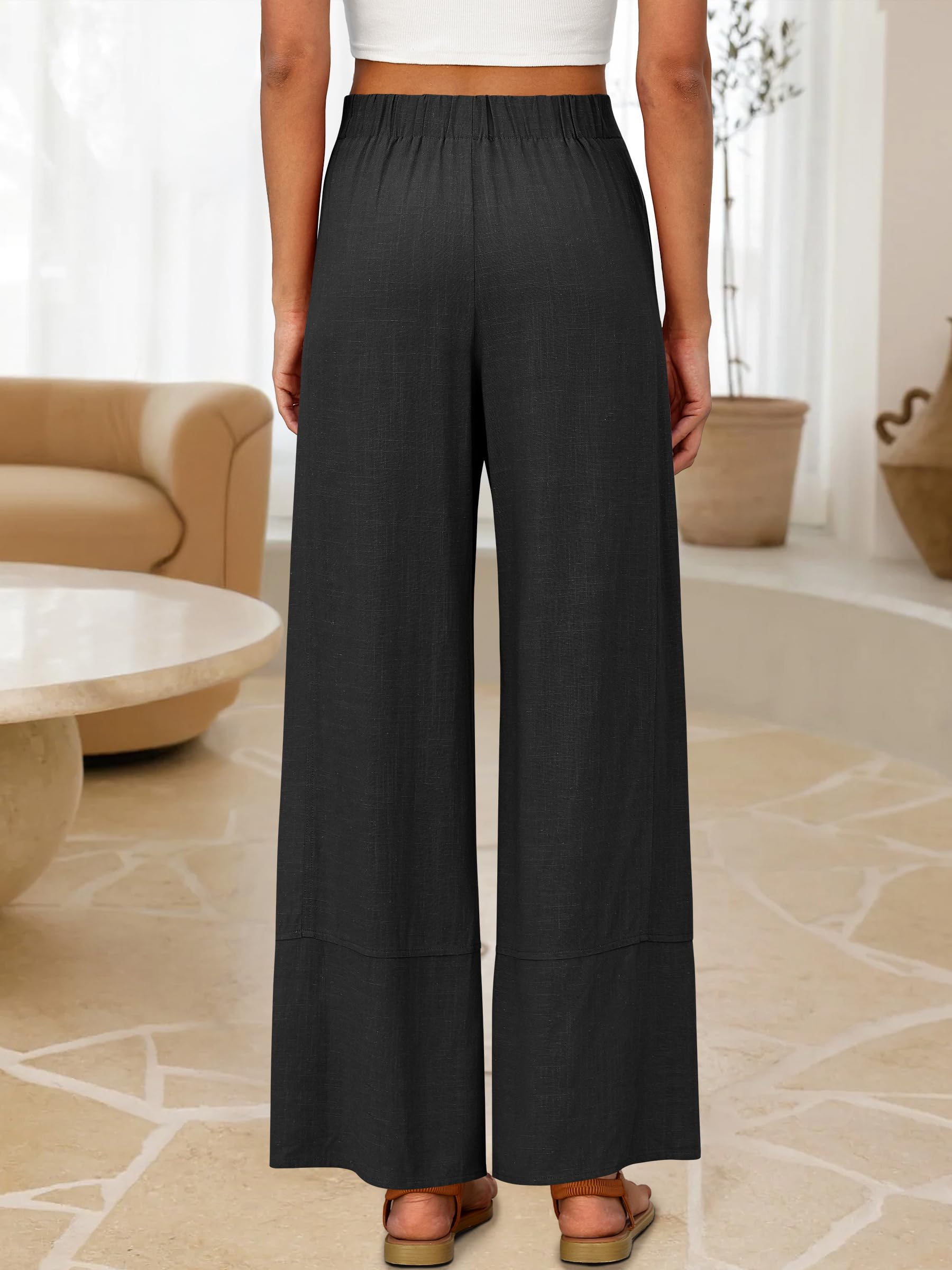 Description ANRABESS Linen Pants for Women High Waisted Baggy Flowy Casual Palazzo Pants Wide Leg Long Lounge Trousers with Pockets