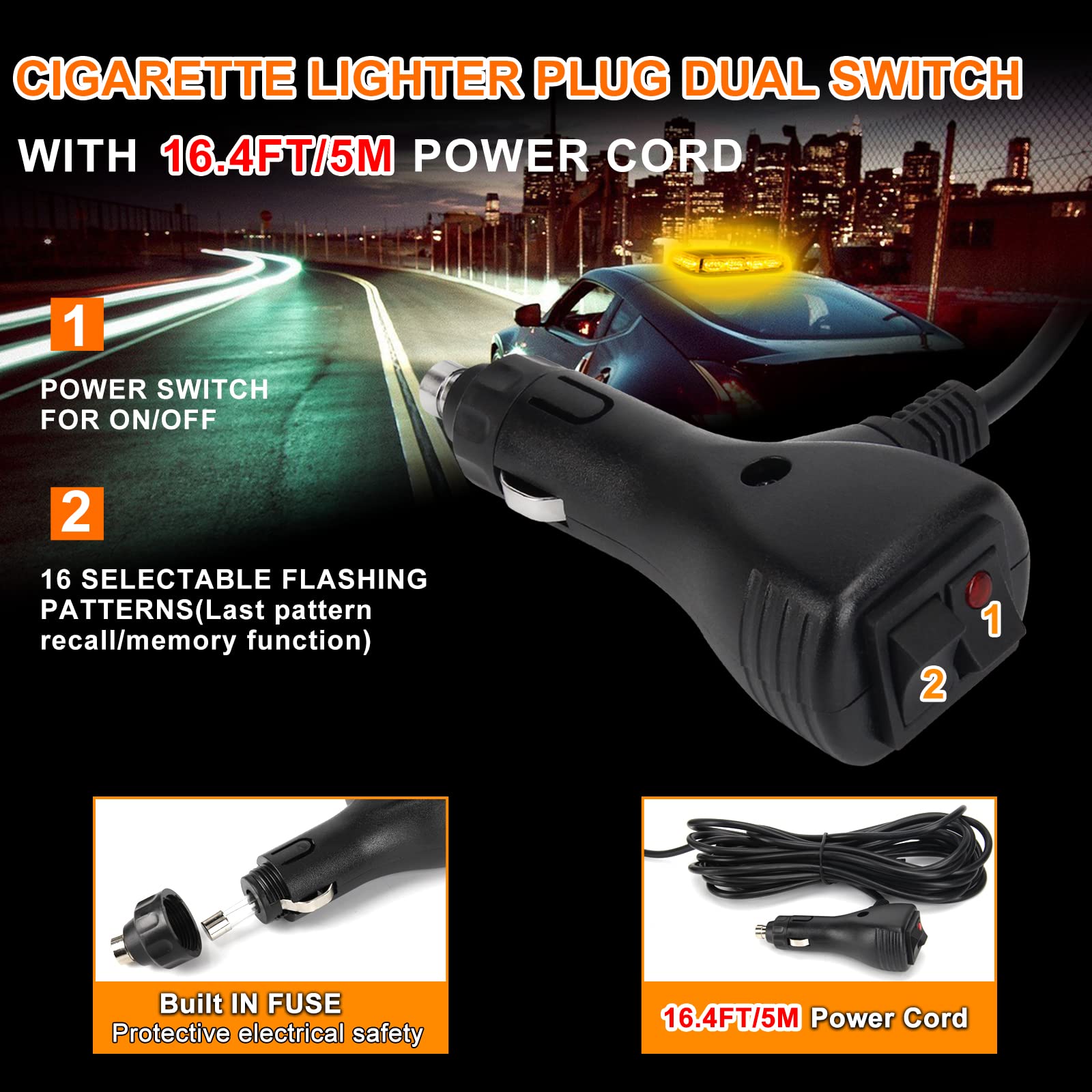 EASY TO INSTALL: The led strobe light bar comes with 14 Total Strong Ma g nets Base, NO need to drilling or cutting and increased hold. Cigarette adapter with ON/OFF switch will be easily to choose the mode that you need.
