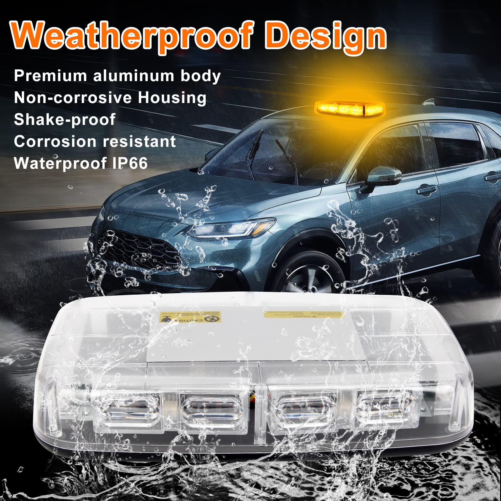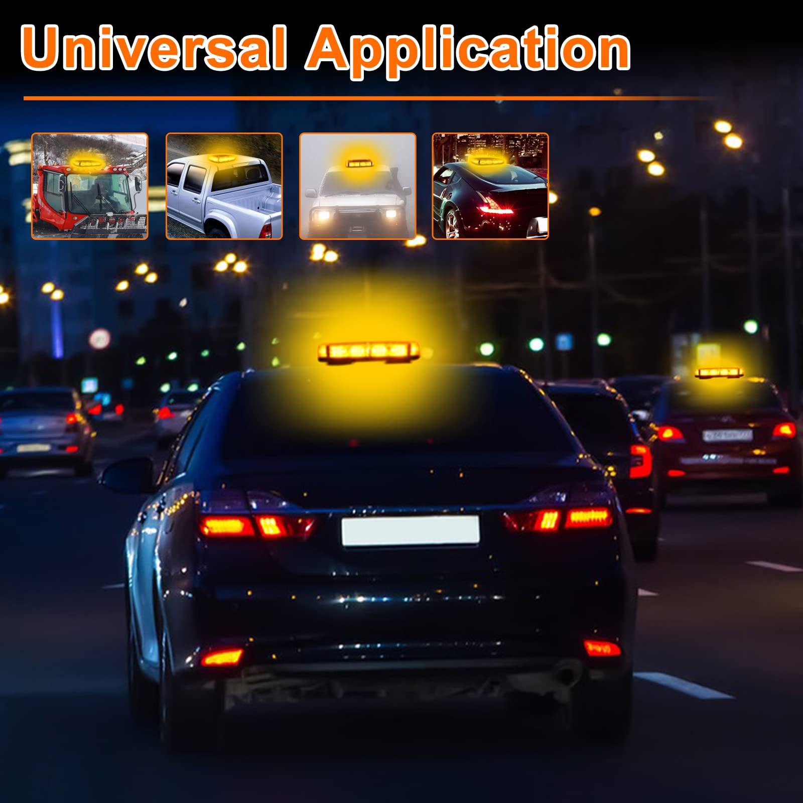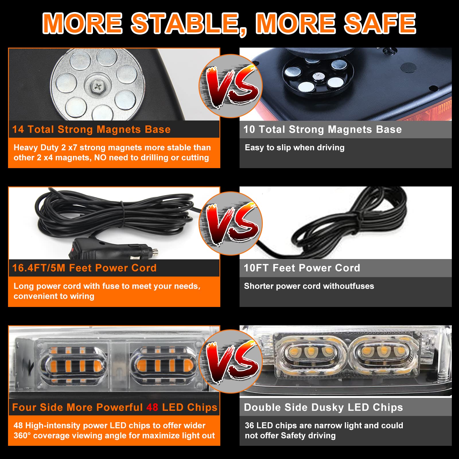 SUPER VISIBILITY:Amber LED roof top strobe light bar with upgraded 48 high intensity LEDs, 360° coverage viewing angle for maximize light out,brighter and more effective than standard Led Strobe Lights,creates high visibility during the day or at night.