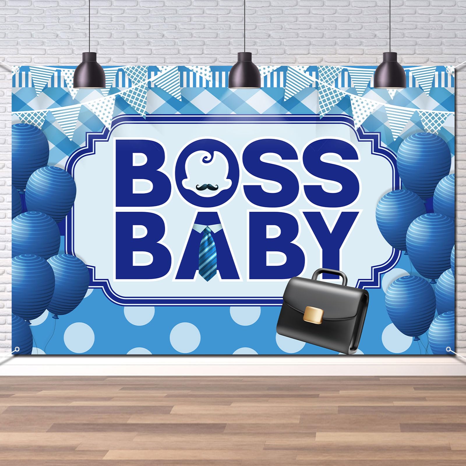 Create A Interesting Party for Your Baby: Add a fun factor to an unforgettable party with a foil balloon set with a black bow, black mustache and blue striped tie.