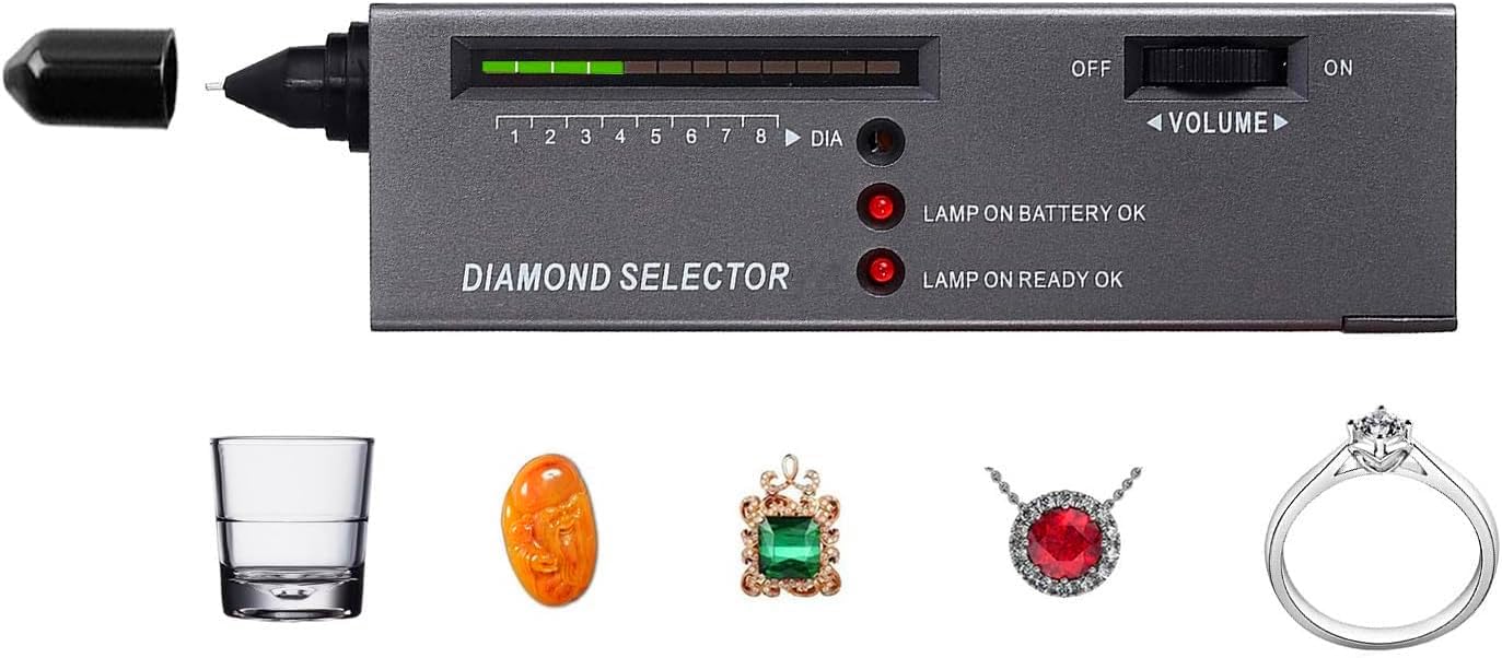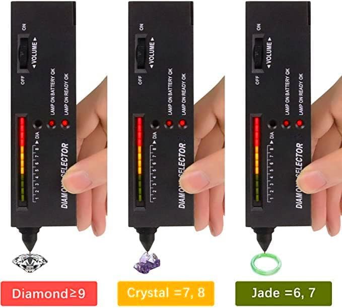 ☀【Professional Diamond Selector】After powering on, turn the wheel to keep 4 green lights on to finish the Initialization. Otherwise you will get inaccurate results.For Diamond Simulants:No Sound and No Red lamps light on.[Note]: This diamond tester cannot distinguish Mosanite and diamonds. Because the product works by measuring the thermal conductivity of an object. The thermal conductivity of Mosanite is almost the same as diamond.
