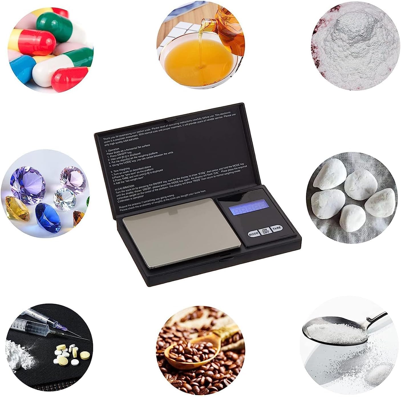 ☀【Pocket Scale】This pocket scale has 200 gram max weight capacity and reads weights in increments of 0.01g. High precision sensors make sure the accuracy. 6 weigh modes available - g/ oz/ gn/ ct/ dwt/ ozt.Tare & Auto-off: You can use the tare function to zero the weight of container within 200g. Energy saving by 3 minutes auto-off function.