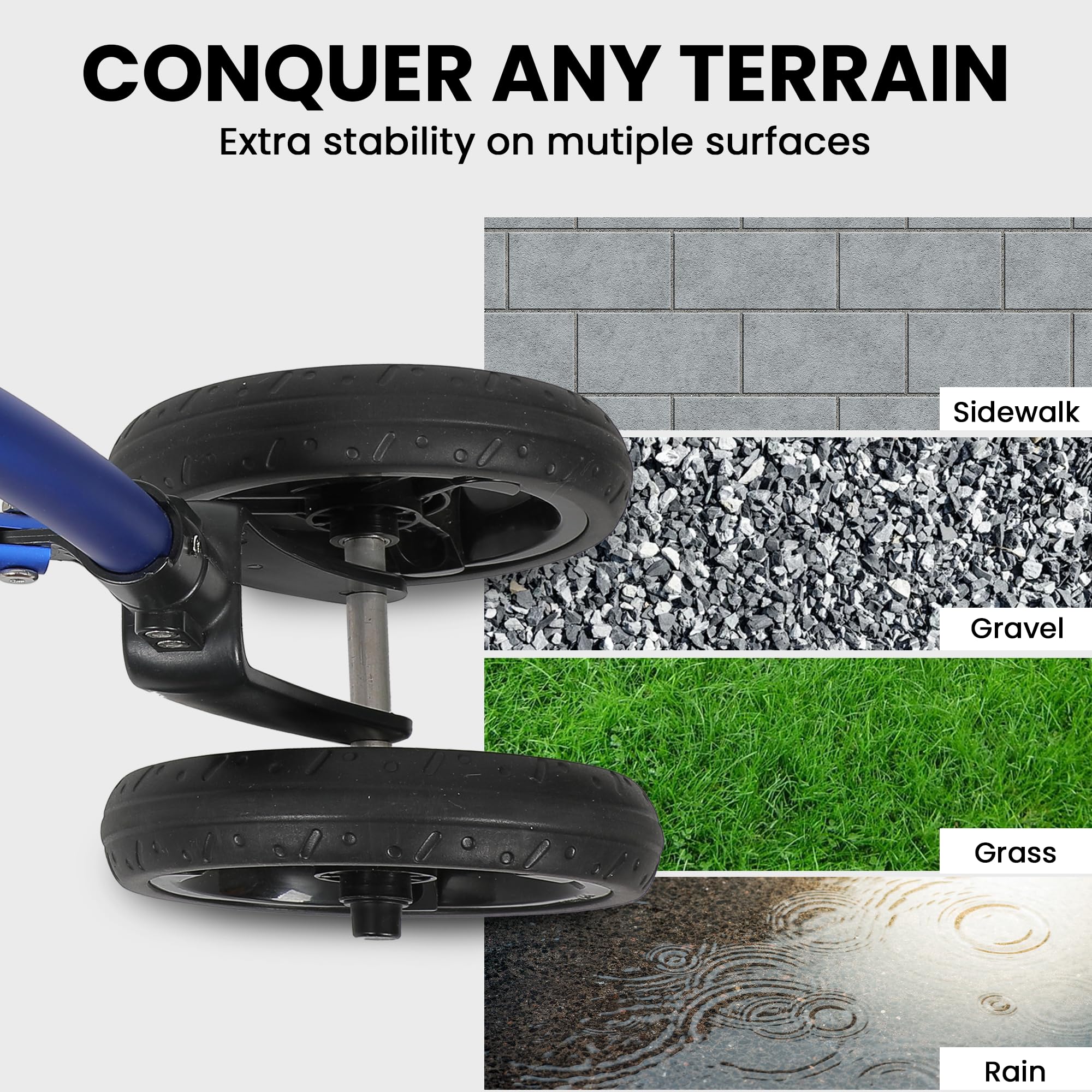 Smooth Rolling & Stable Frame for Walking: Navigate with greater confidence thanks to the 7.5" wheels and stable frame design; This wheeled walking aid provides consistent support as you walk, helping maintain balance across various surfaces; The sturdy aluminum construction ensures reliability for daily use