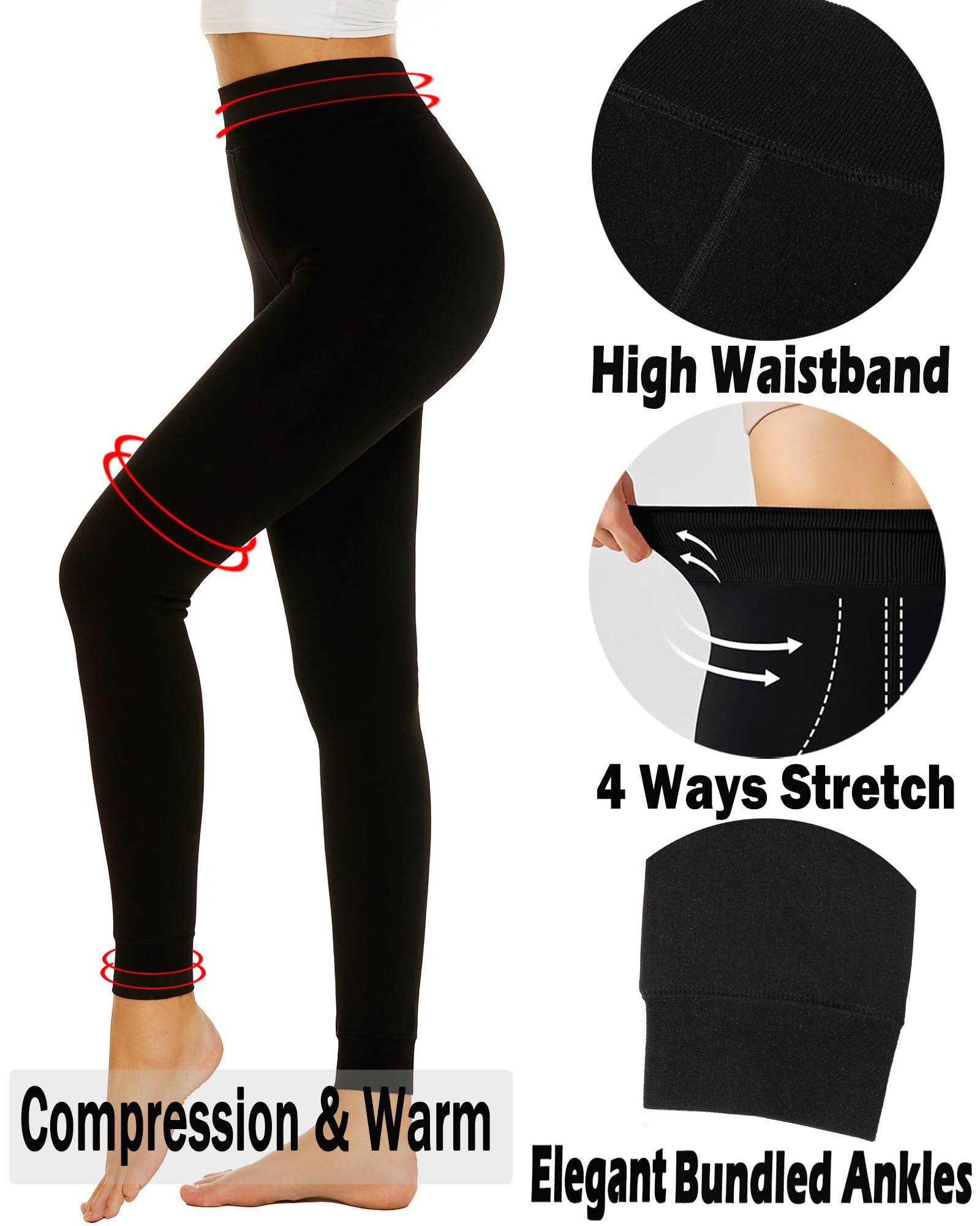 HIGH WAIST & WARM BELLY:The thermal leggings are added 3-4inch waistband,which could tummy control and prevent pants from falling off when you sports,running,slapstick,frolic,ski etc;And thick fleece lining and high waistband also could enhance warm abdomen that is good for women in Autumn & Winter.