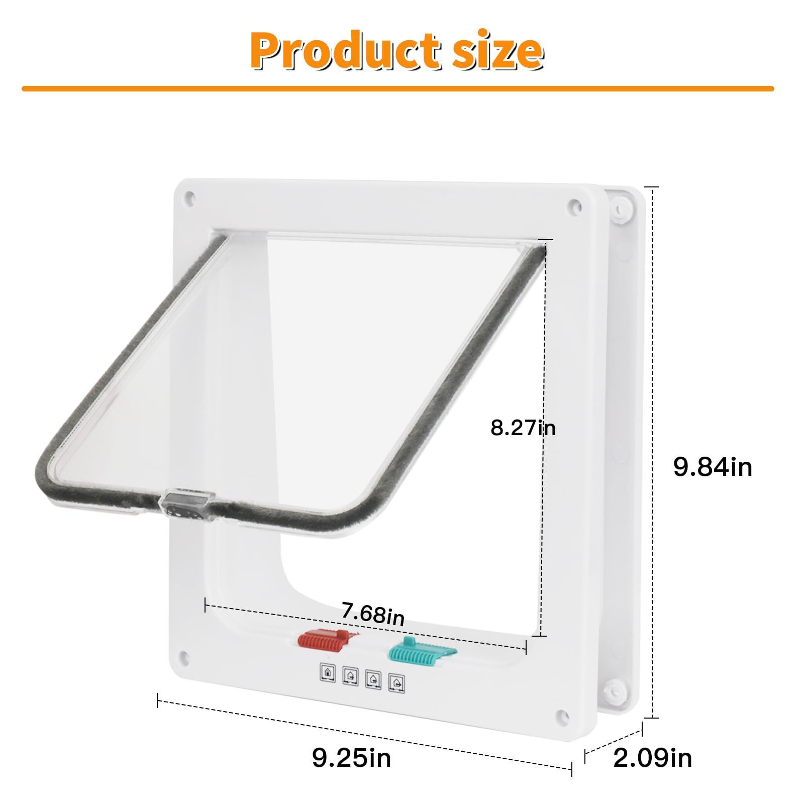【Fits Interior & Exterior Doors for Cats & Small Dogs】 Cat Door versatile design installs easily on most interior and exterior doors. The ideal size (9.84"x9.25")provides comfortable passage for your cats and small dogs.