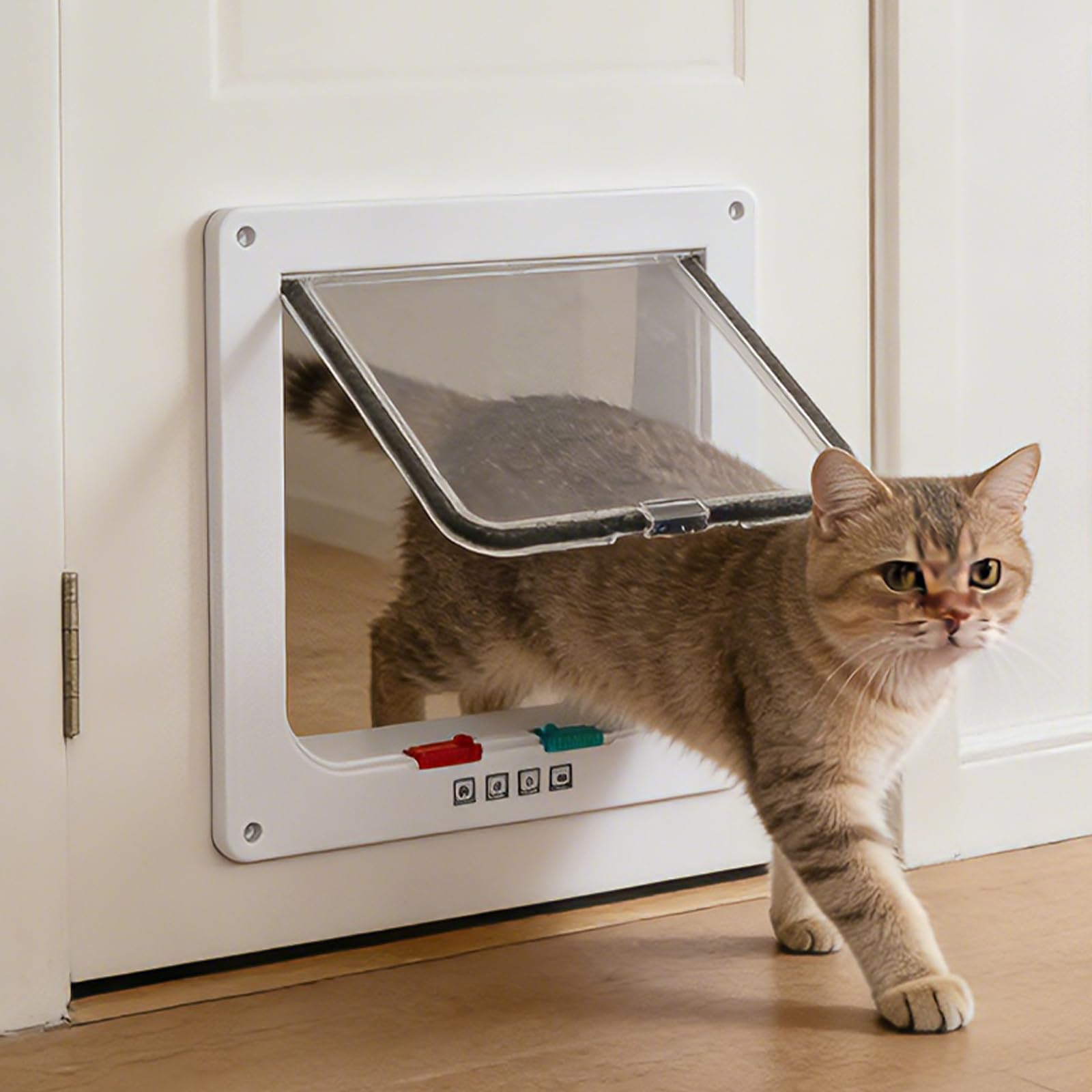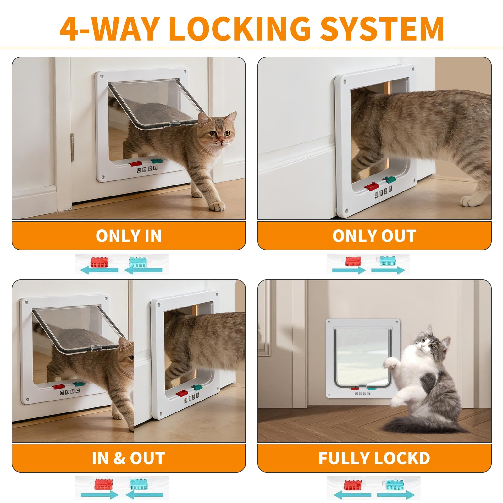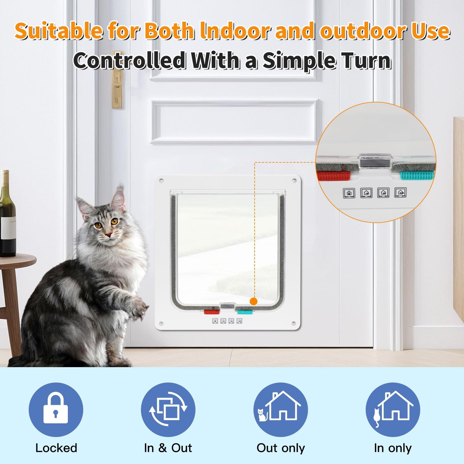 【4-Way Locking System for Total Control】 Cat door interior door secure latch offers locked, in-only, out-only, and free-pass settings. Control your pet's access and prevent unwanted entry from other animals for complete peace of mind.