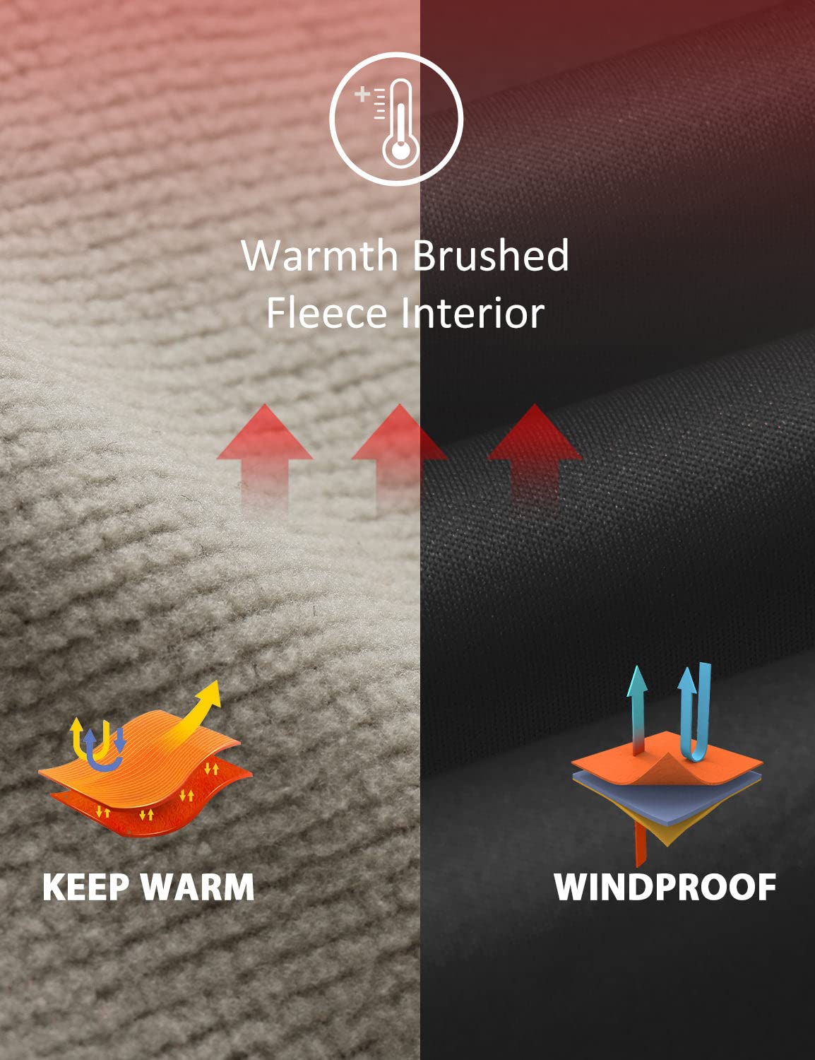 Windproof& Warm: 3-layer insulation composed, the top layer on the exterior is a windproof surface,the second layer is a breathable membrane film, and the third layer is a nice soft warm fleece, keep you warm without overheating.