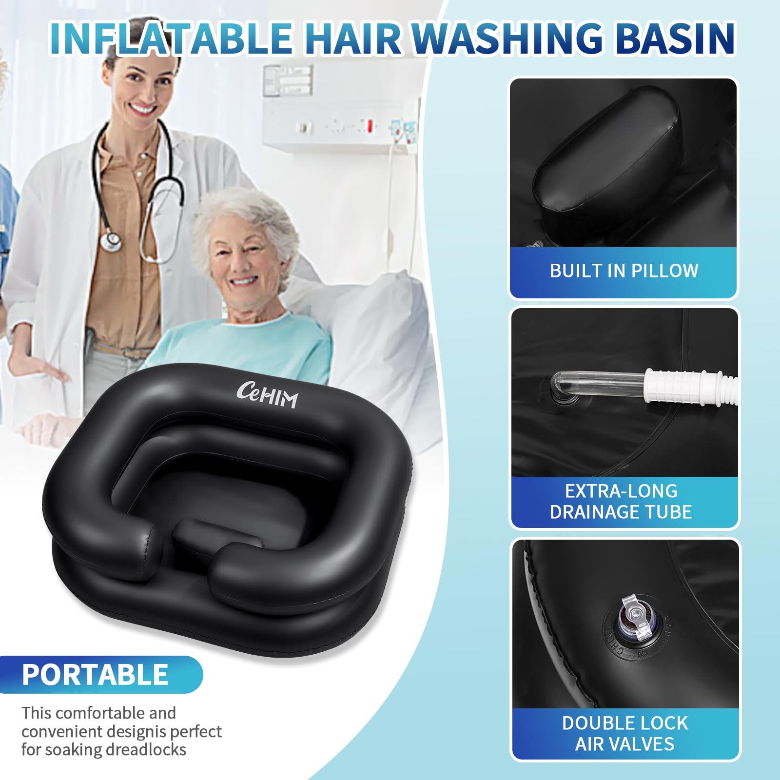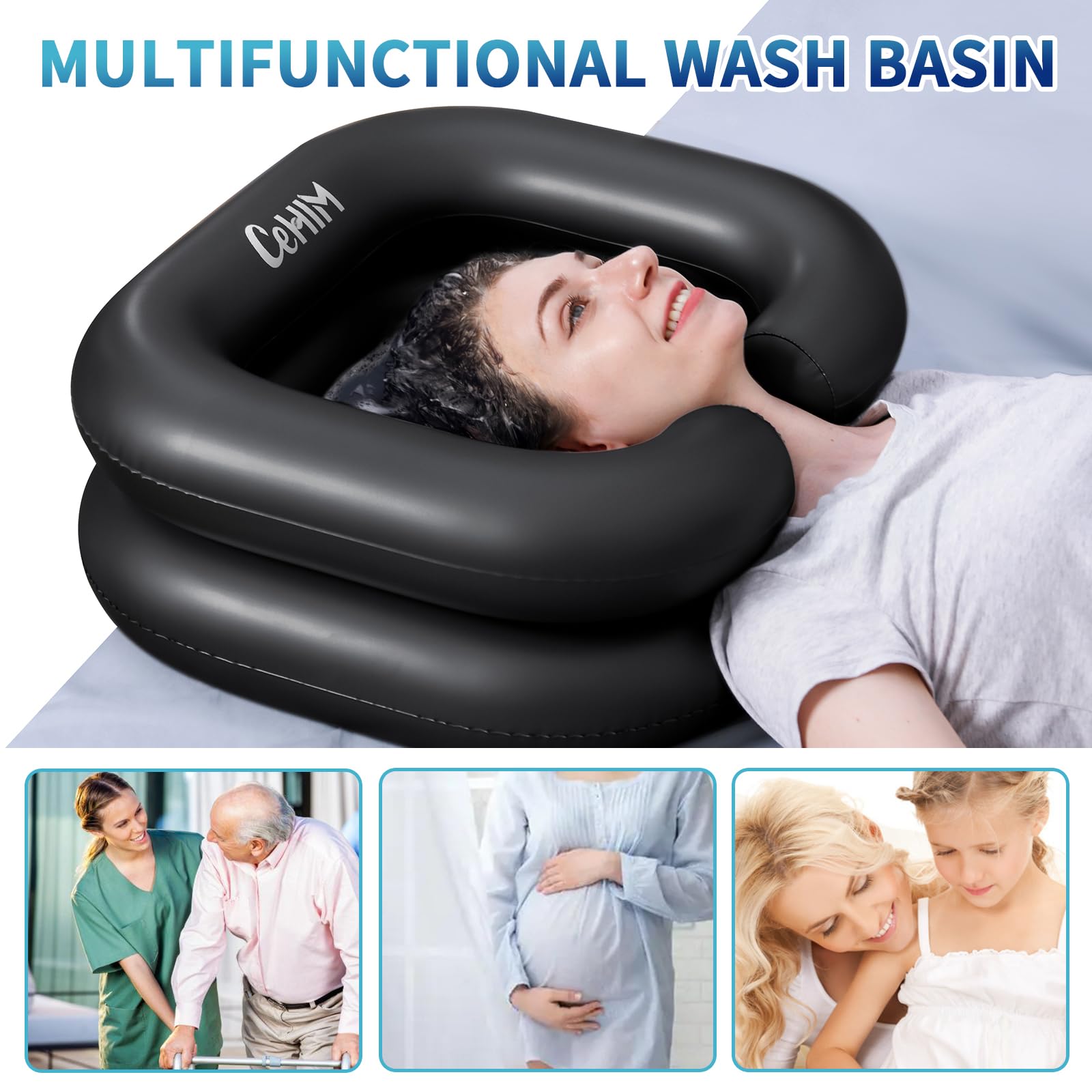 【Inflatable Hair Washing Basin Solves the Difficulty of Washing Hair】Using the portable shampoo, washing hair on the bed is easy and convenient. It is very suitable for children, pregnant women, the elderly, etc. It not only simplifies the shampooing work of the inconvenient people or after surgery, but most importantly, it makes them feel very comfortable. The Black color is easy to keep clean and unlike white basins, won't show all the dirt/stains.