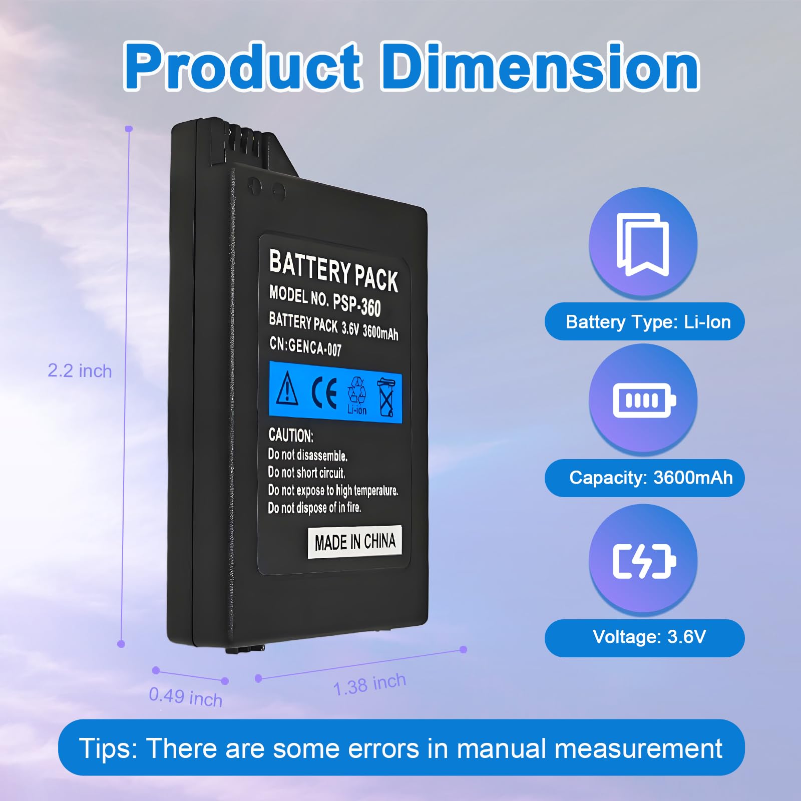 Safe to Use: The rechargeable battery for PSP-1001 has a built-in microchip to prevent overcharging, over-discharging, short-circuiting, overheating, etc., to ensure the safety of the battery