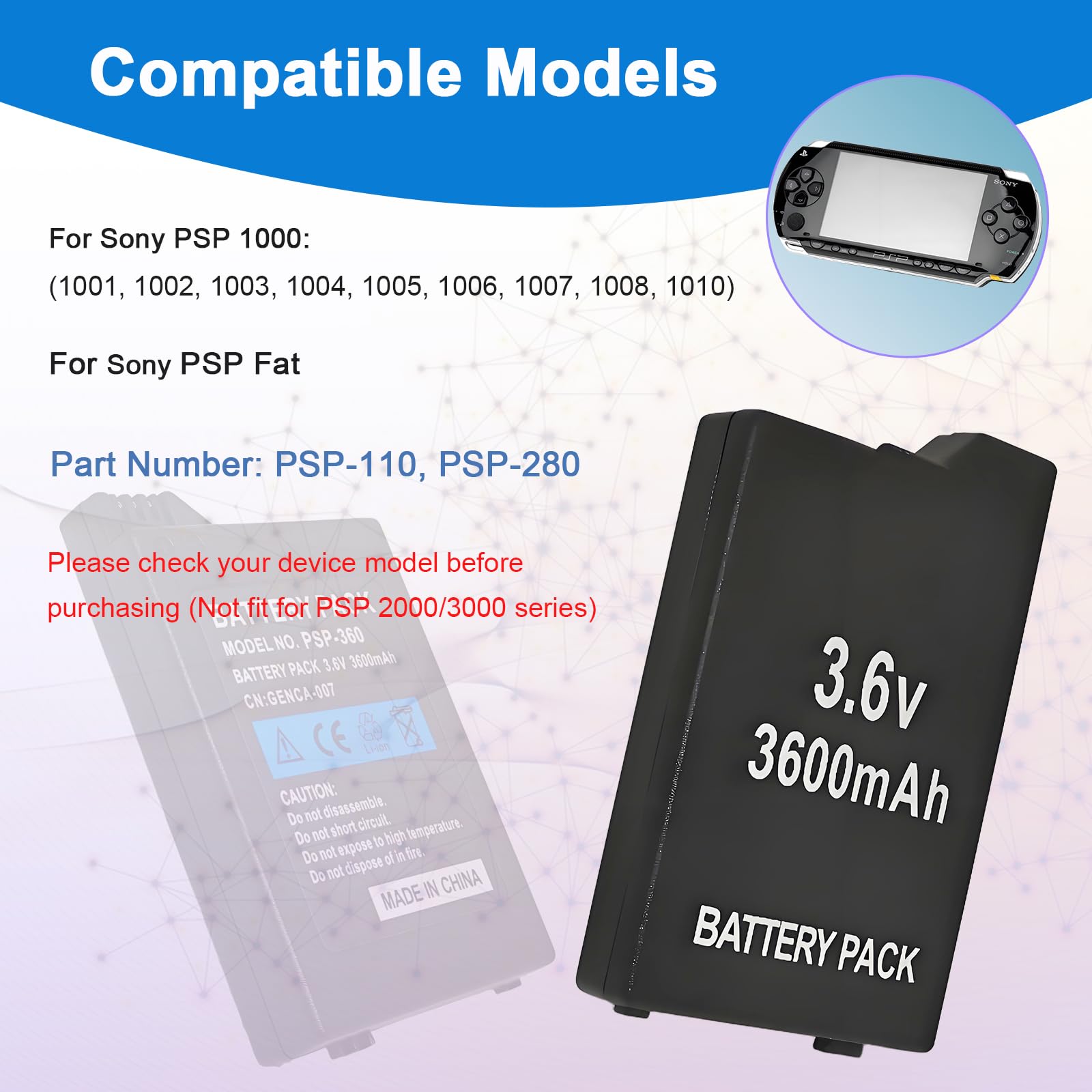 For PSP 110 Battery: Compatible with Sony PSP 1000 series, PSP Fat game player battery