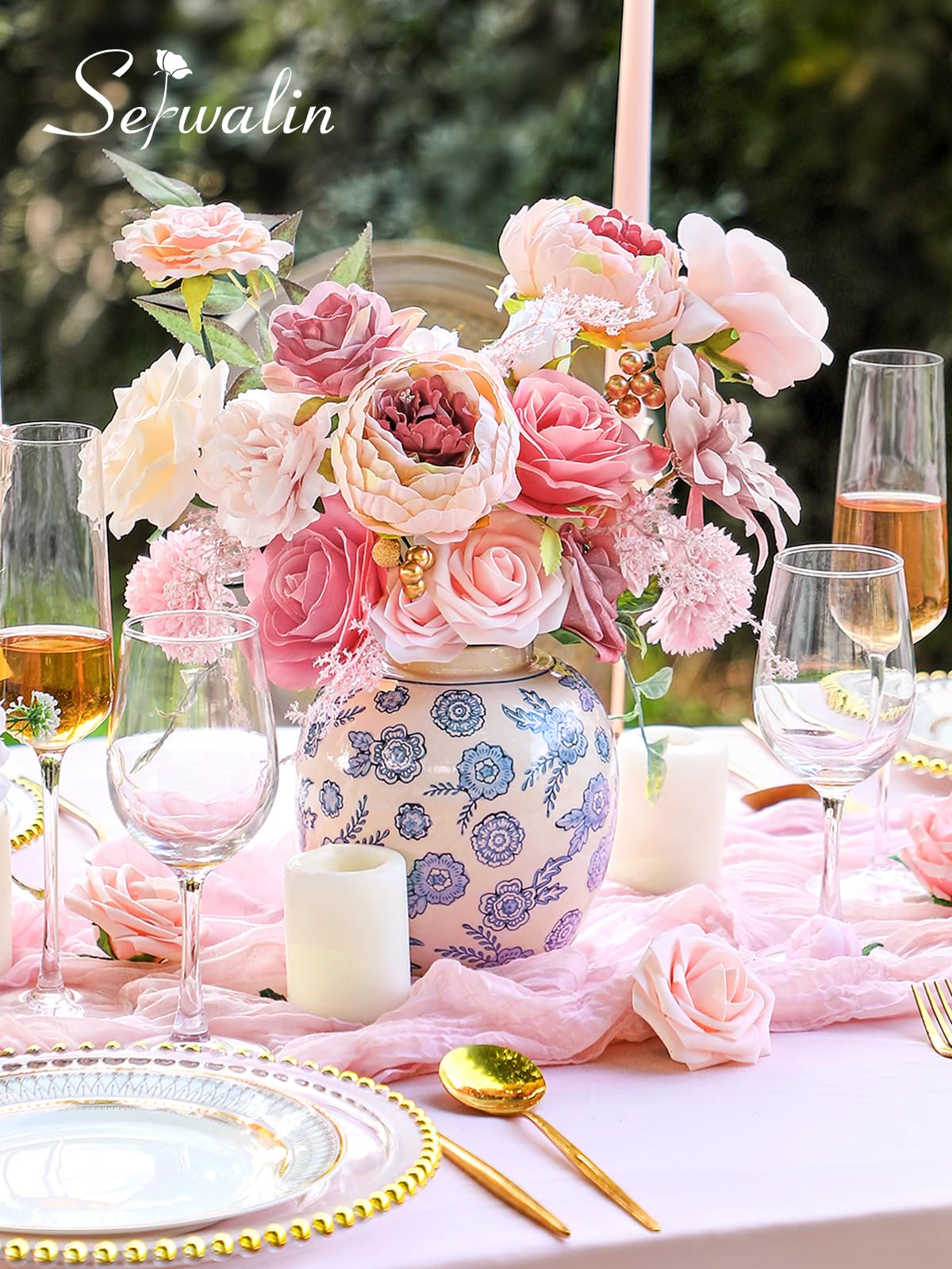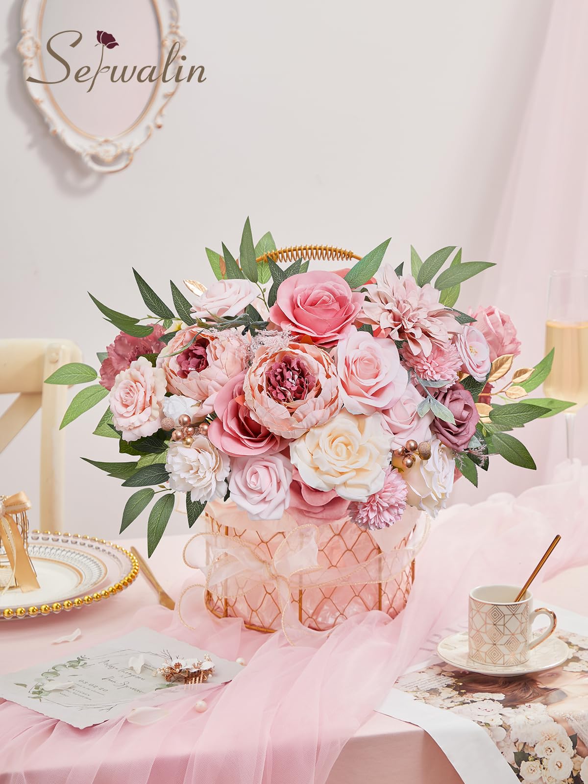 "Trust in Serwalin, a reliable brand specializing in wedding and home decor. Our professional design team ensures the perfect match of every artificial flowers boxes, while our quality control team guarantees the excellence of our products. If you have any question of the product, please feel free to let us know.