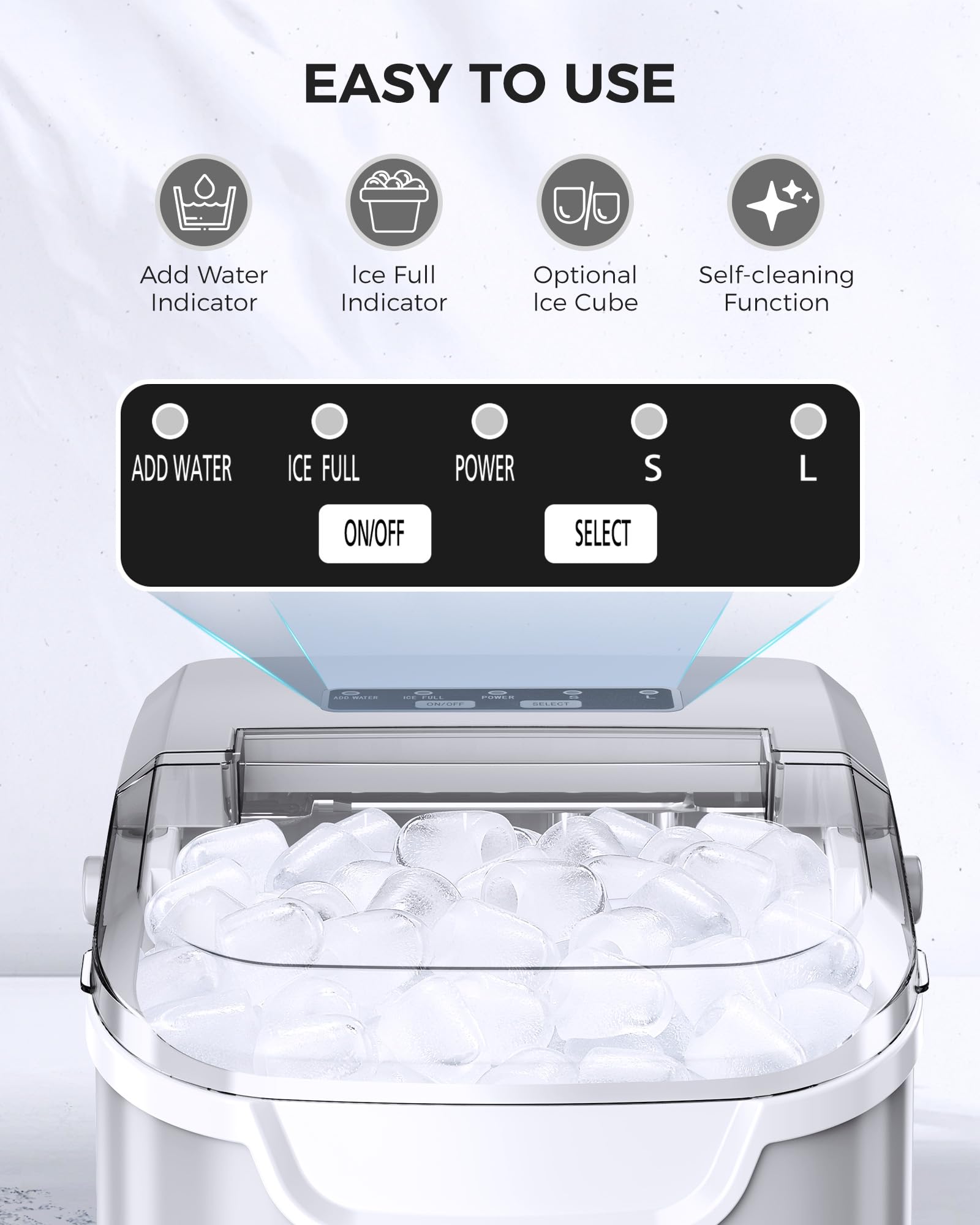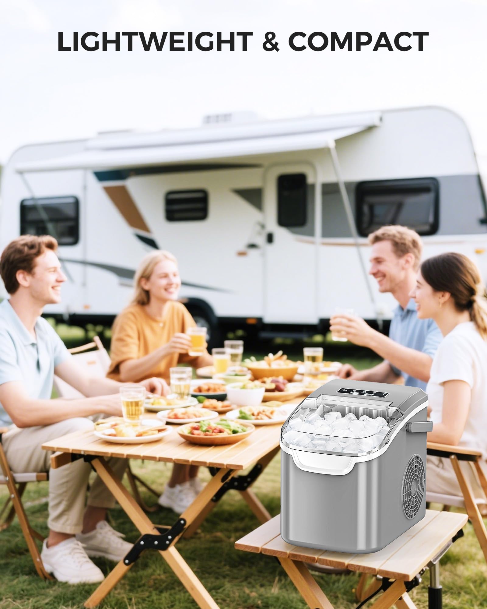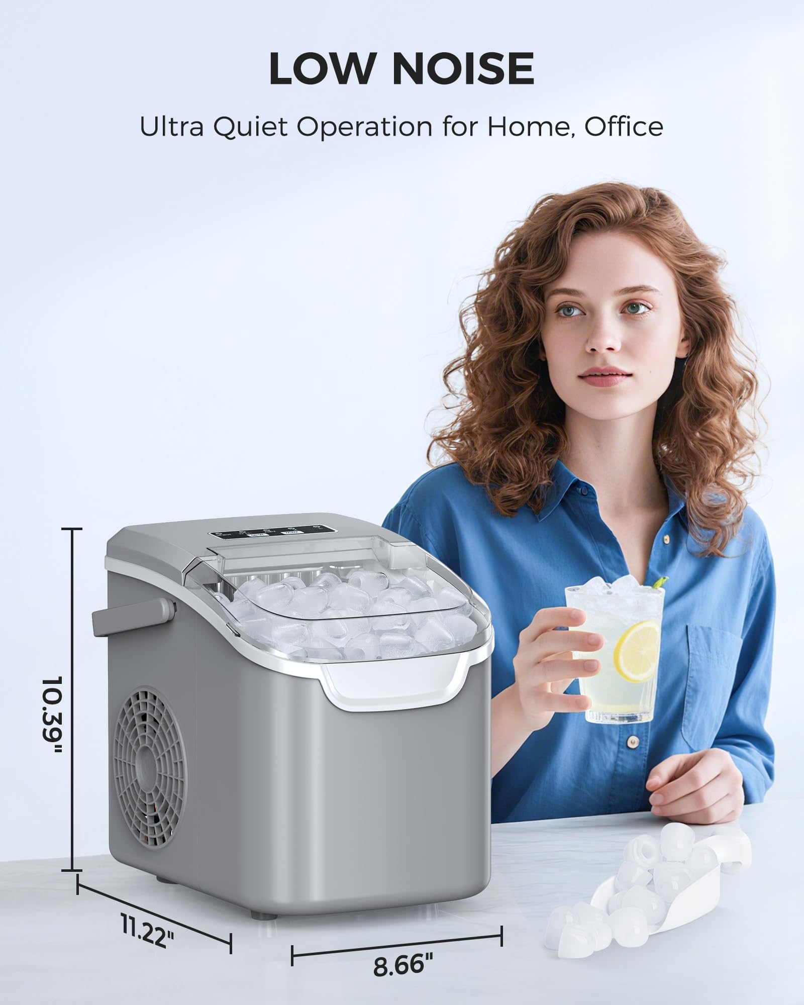 Portable and Space-Saving: This ice maker has a compact design and comes with a handle, making it easy to carry. The ice maker weight is 11.75 pounds.